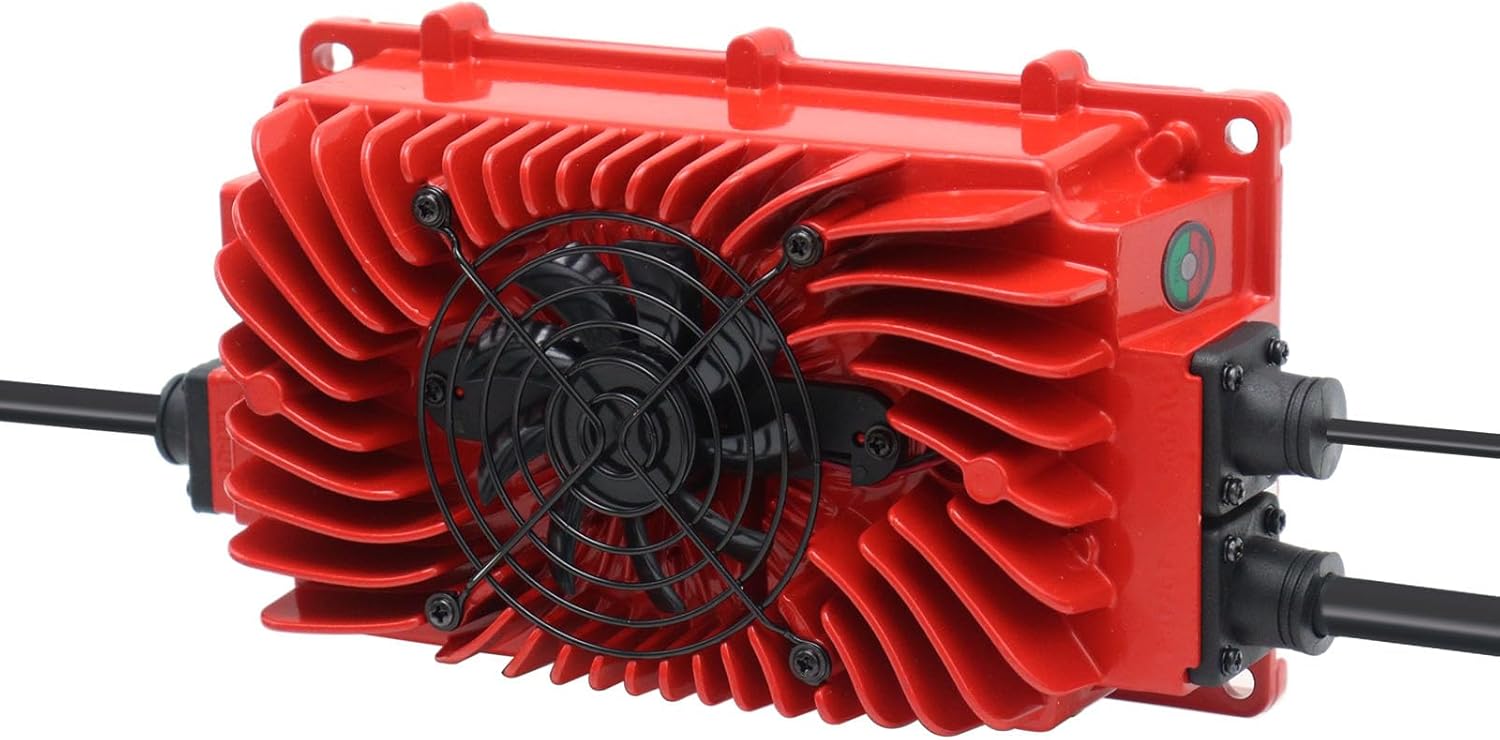 - *LIGHTWEIGHT & CONVENIENT CARRY HANDLE - The charger weighs in at only 6.5 lbs and is more than 65% lighter than most OEM golf cart battery chargers. It is constructed with a durable die-cast aluminum alloy casing providing exceptional durability.