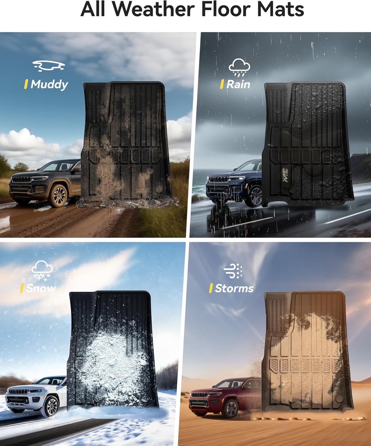- ALL-WEATHER GRAND CAR MATS: These durable TPE rubber car mats can prevent stain liquid snow mud and debris from contaminating your carpet. It is a must-have for your car protection all year round.