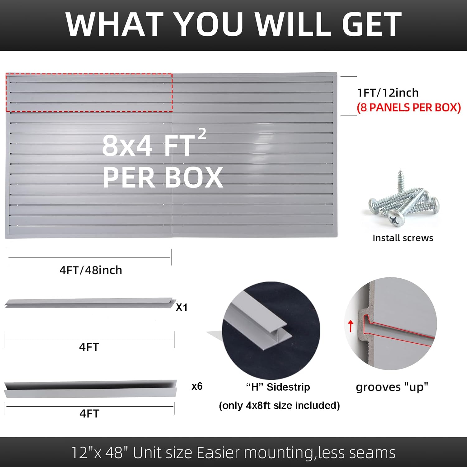 - CHIRSTMAS GIFTS FOR MENS: Our durable garage slat wall panel system includes eight 4ft x 1ft slatwall panels, offering a coverage of 32 square feet. Whether used individually or in combination, these slat wall panelings allow you to create the perfect setup that suits your needs. If you need extra slat wall storage organizer space, you can effortlessly expand and customize your ideal configuration by adding more garage slatwall panels. Meet evolving needs with personalized storage flexibility.