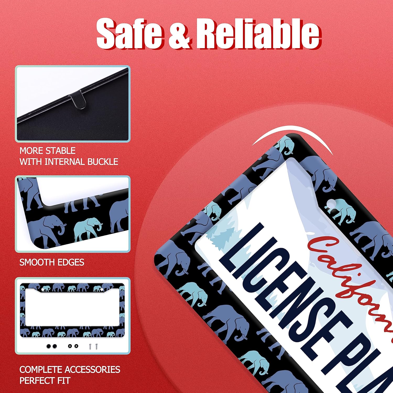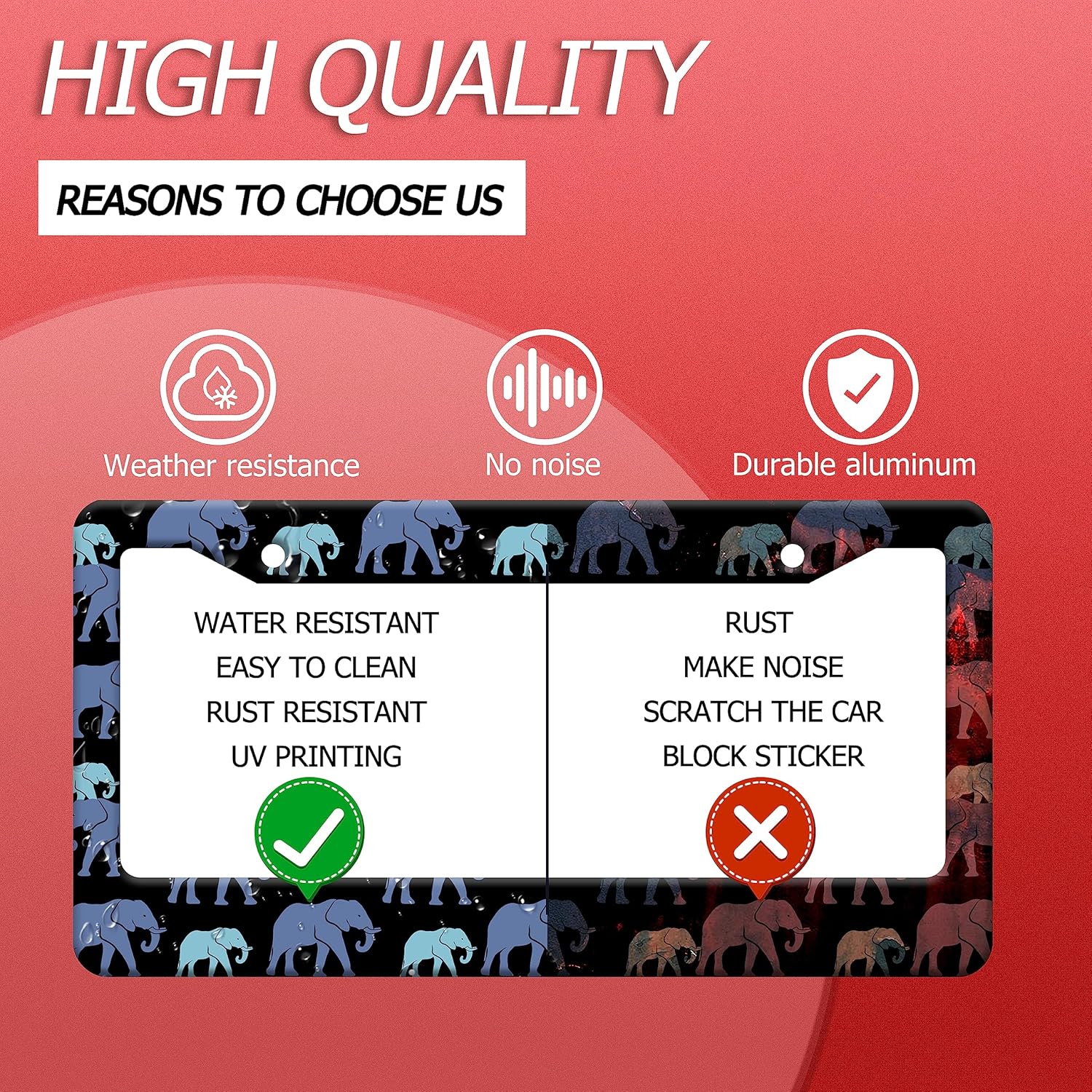 Elephant Family License Plate Frame Animal License Plate Stainless Steel Parts Colorful License Plate Decorative with Screws Size 12.3" x 6.3" Men Women