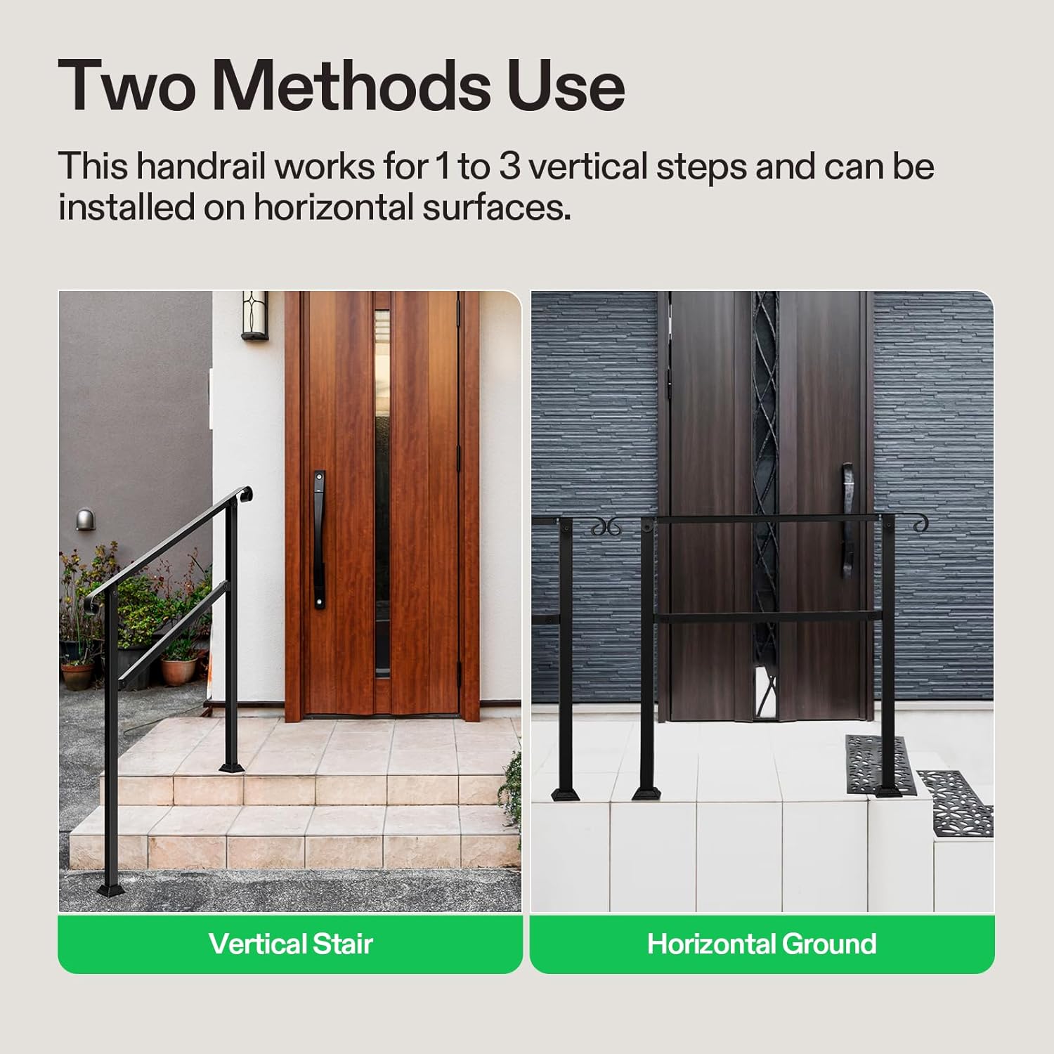 - Wide Applications: This robust stair handrail is suitable for a wide range of individuals, including the elderly, children, or those with mobility challenges; It can be conveniently installed on steps and stairs in various locations, including terraces, balconies, porches, gardens, decks, residential buildings, garages, and more