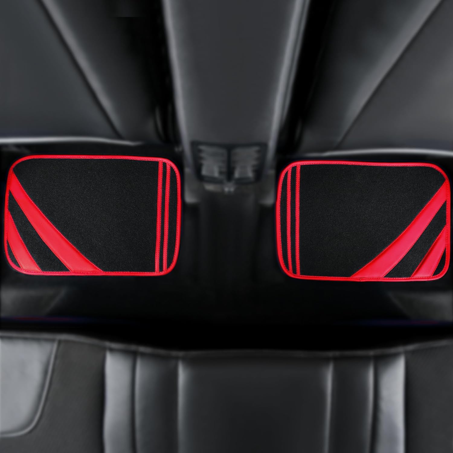 CAR PASS Red Edge Leather Car Floor Mats, Universal Waterproof Car Mats with Double Stitch Line and Anti-Slip Backing Design, for Cute Girly Women, Fit 95% Automotive,SUVs,Sedan,Vans (Black and Red)