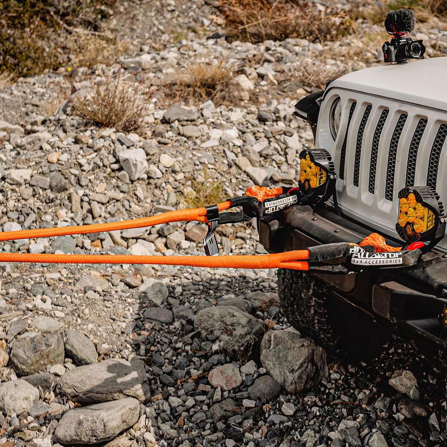 - 【WHY YOU NEED IT】 Four-wheelers got stuck in sticky mud, Overlanders lost tire traction in sand dunes, Rock Crawlers lacking of engine torque to go over large boulders. A set of ALL-TOP Kinetic Recovery Rope will settle all these up by its Kinetic Snatching Force. And such perfect recovery gear is just kept in a rain-proof easy carry bag.