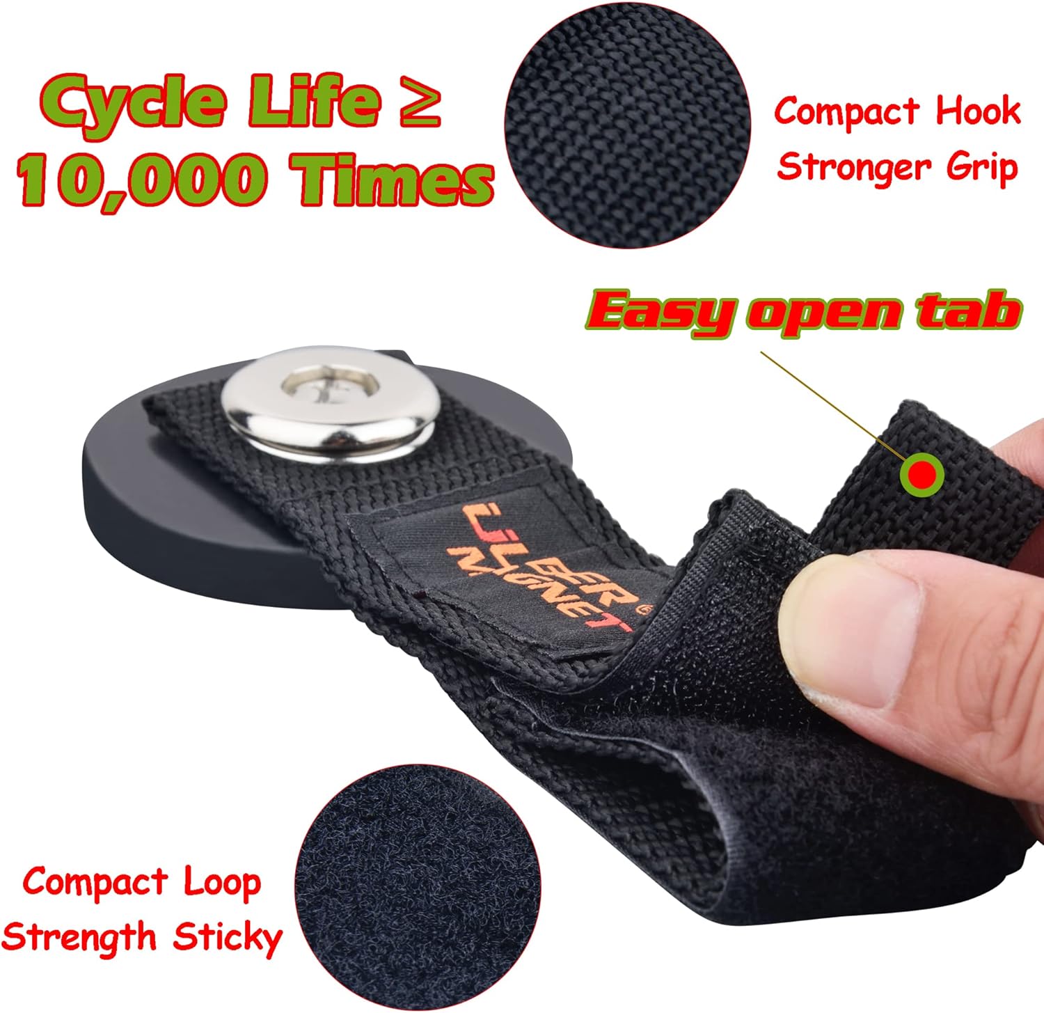 - [Hook and Loop]: Hook and Loop,Cycle life over 10,004 times. Just hang it on the metal surface, you can work easily. The strap is equipped with Velcro, which can adjust the length at will and hang different types of tools