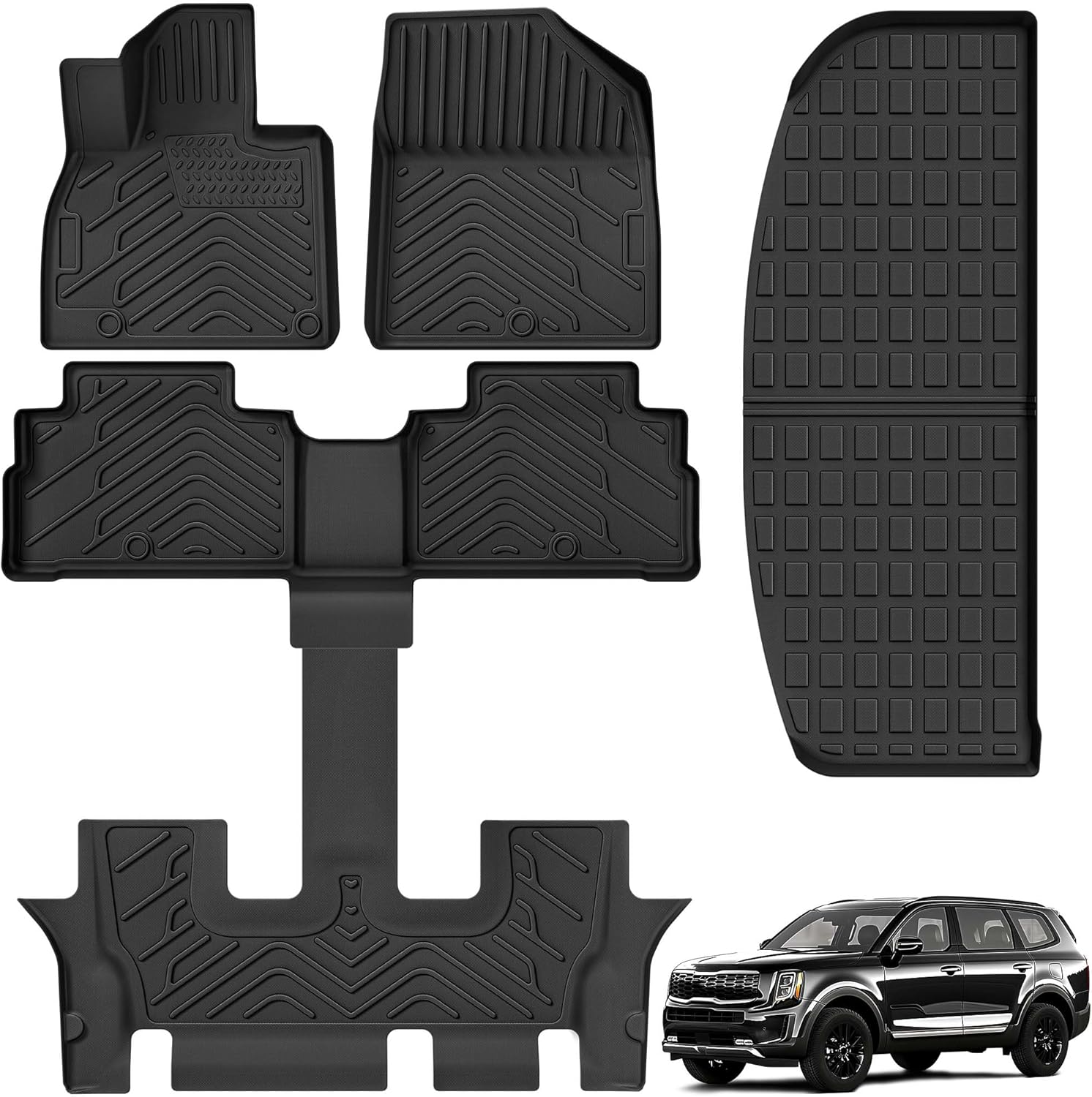 - Vehicle Compatibility: Floor mats compatible with 2020 2021 2022 2023 2024 2025 Kia Telluride with 2nd Row Bucket Seats Without Center Console; Packages includes 2 x front floor mats, 1 x rear floor liner, 1 x 3rd row floor liner and 1 x cargo Liner mat