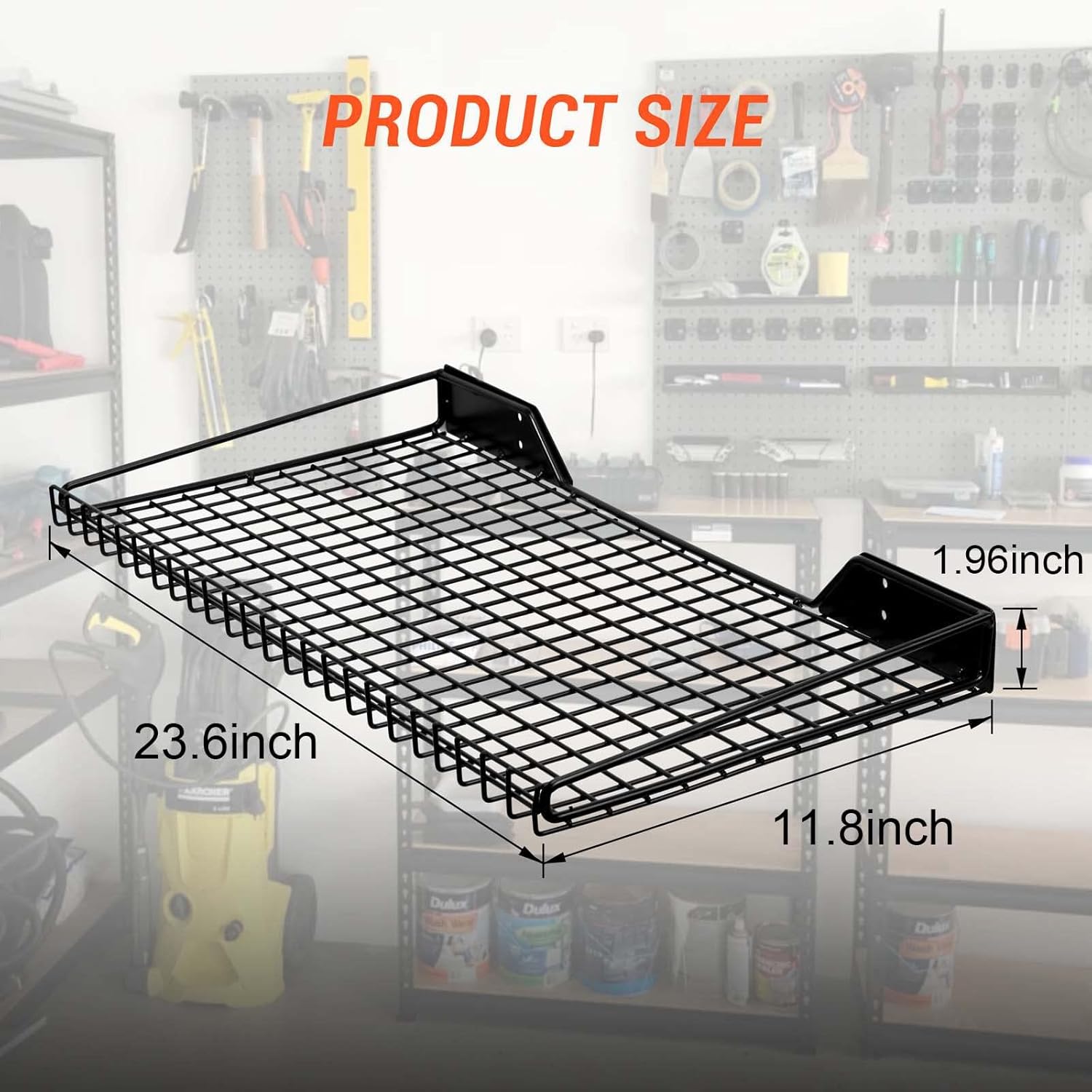 Wallmaster Heavy Duty Garage Wall Shelving 4 Pack 23.6"x11.8" Metal Wire Shelves Wall Mount Mesh Storage Rack for Garage, Office, Basement and Kithcen, max Load 65 lbs (Black)