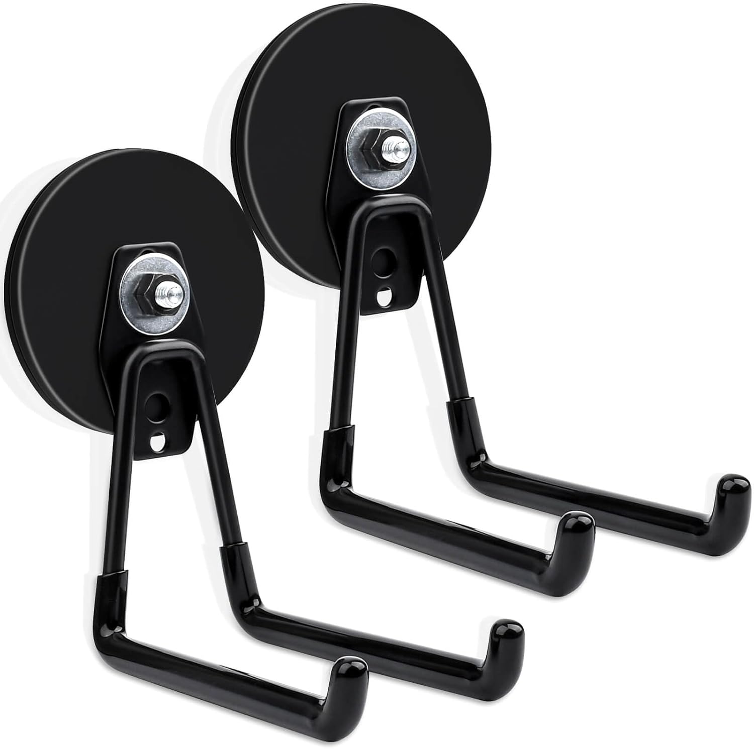 MIN CI 2 Pack Magnetic Hooks, 3.46" (88 mm) Heavy Duty, Black, Neodymium & Rubber, 35 lbs Max Weight, Industrial Style, Garage, Workshop, Kitchen, Pegboard, Metal Cabinets