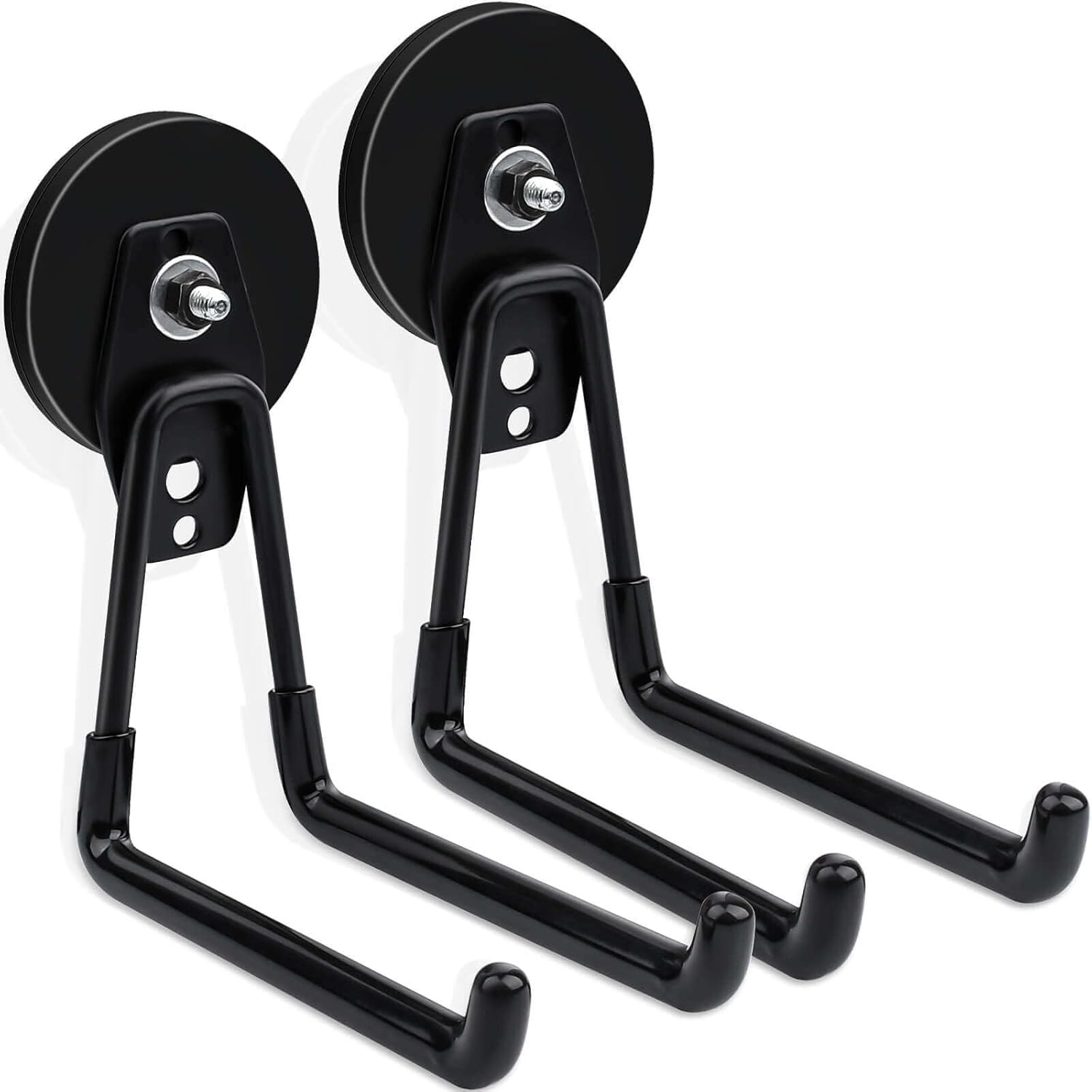 2 Pack Magnetic Hooks, Large Manget with Hooks, 2.59" (66 mm) Magnetic Hooks Heavy Duty for Hose, Jig Saw, Circular Saw,Workshop Organization, Tool Hooks for Hammer Drill, Garden Tool, Black