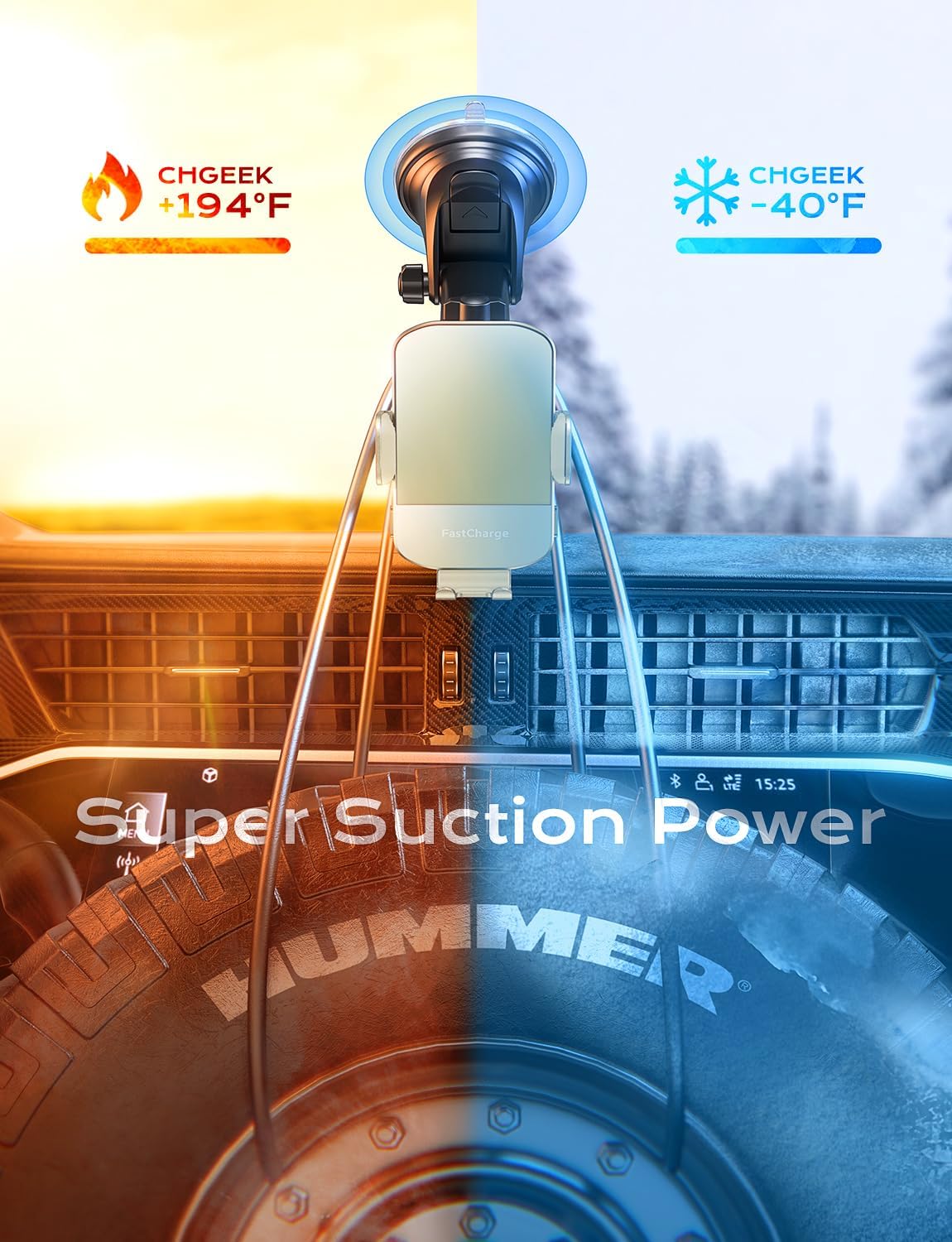 CHGeek Wireless Car Charger, 15W Fast Charging Auto Clamping Car Charger Phone Mount Phone Holder fit for iPhone 15 14 13 12 11 Pro Max Xs, Samsung Galaxy S25 Ultra S24 S23 S22, S21, S20, Khaki