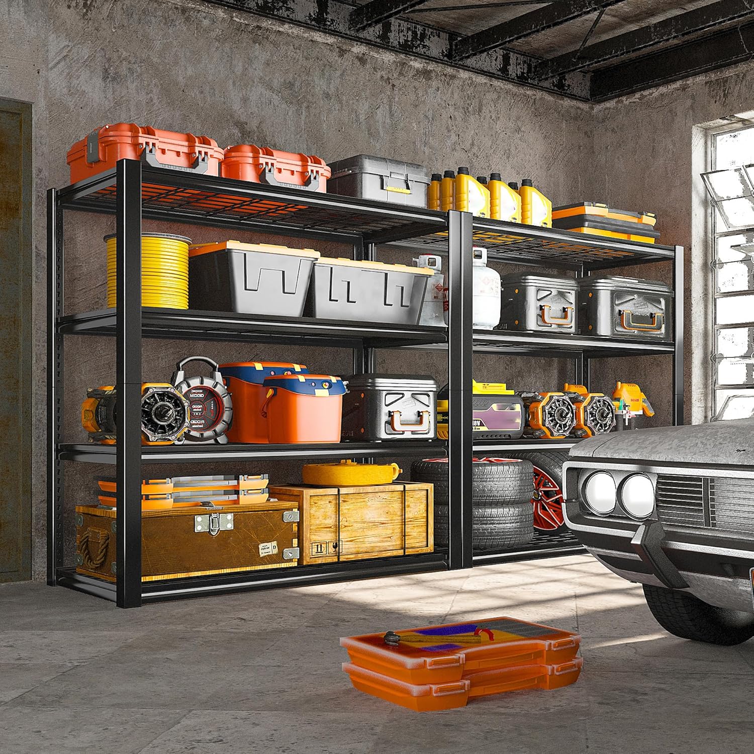- ă2200 LBS Garage Shelving Heavy DutyăThis garage shelving is born for placing heavy objects, its load-bearing capacity can reach an amazing 2200LBS, each layer bearing 550LBS, even if you are stacked with fitness equipment on the top, this garage storage shelves will not be deformed and bent. The stable and strong garage shelves makes it completely suitable for warehouse, supermarket, industrial and other scenes, and can carry all kinds of heavy goods