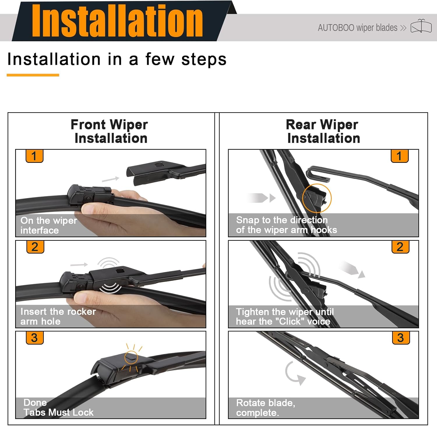 - EASY-TO-INSTALL: Quick and easy to install. fit perfect to your car, like the original parts. It’s installed to the wiper arm by top lock.
