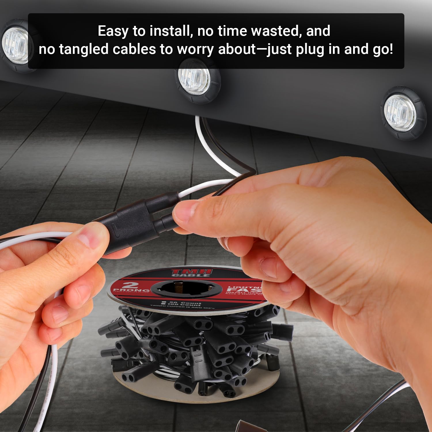 TMH 20 Count 2-Prong Wire Harness Roll Double Female Bullet Plug 18 Gauge - 6.5" Spacing for LED Marker Clearance Lights Hassle-Free Installation