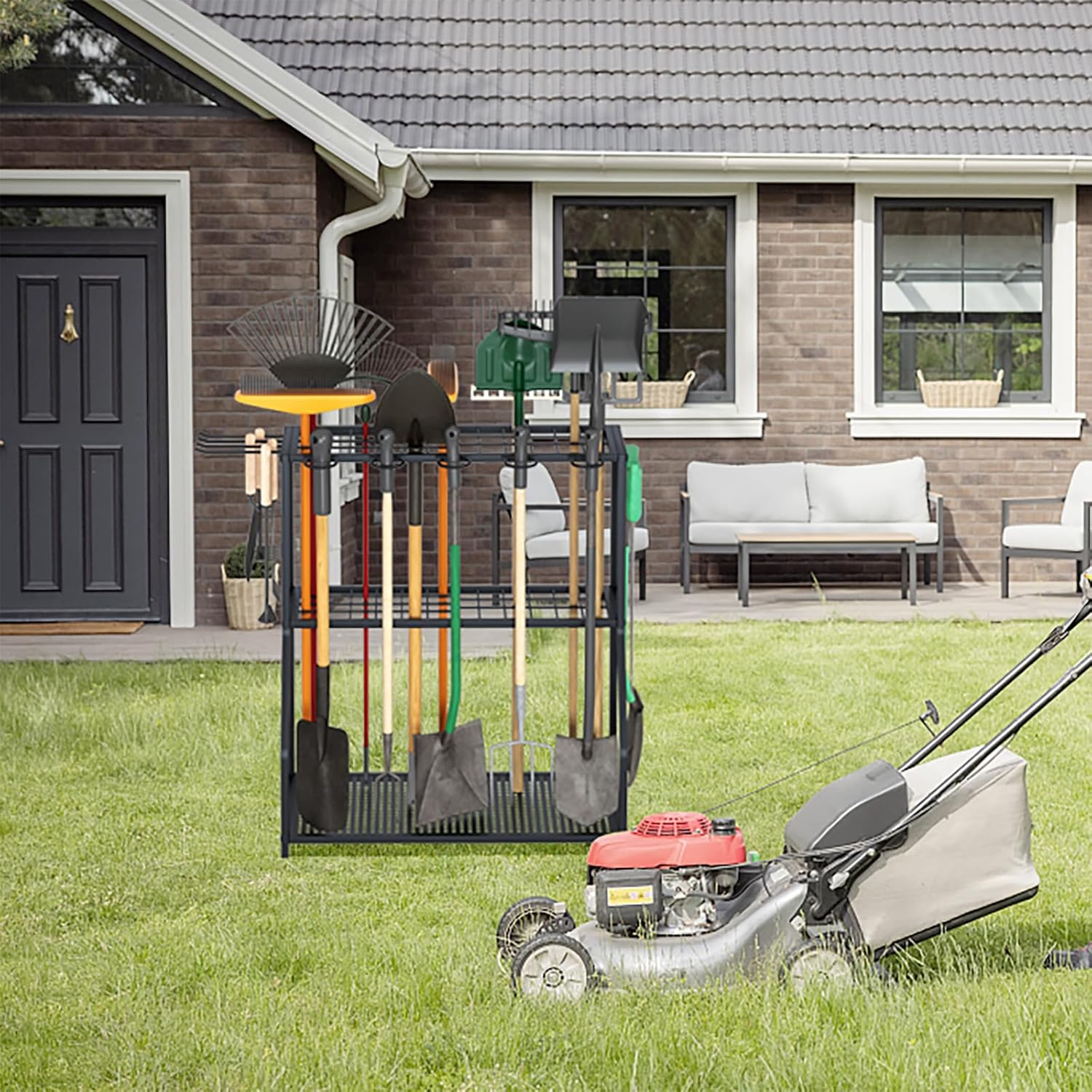 - 【DURABLE & STABLE】This backyard tool rack and garage tool storage cart are made of sturdy and durable high-quality powder coated steel, with a rust resistant surface that is not easy to peel off paint,with a stable frame structure, and good load-bearing effect.