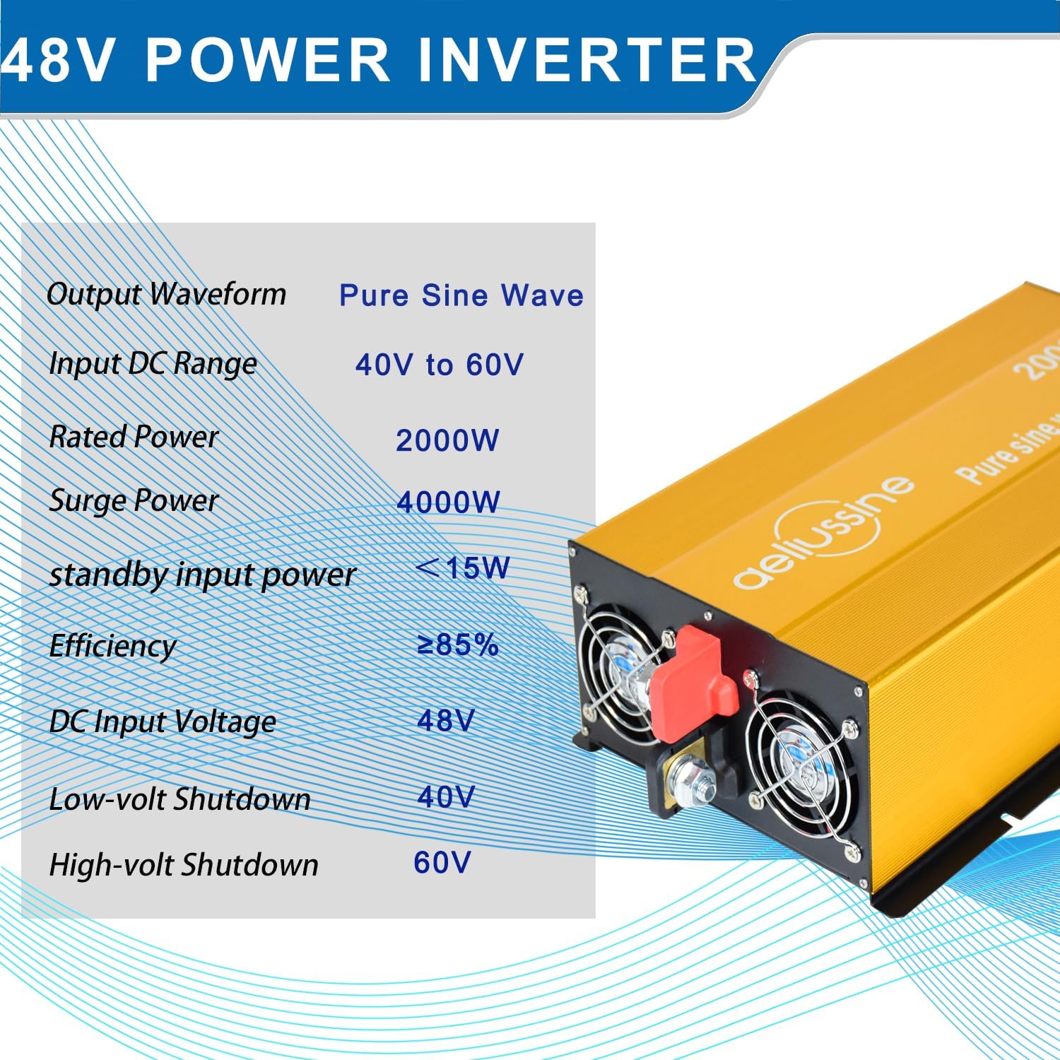 2000W Pure Sine Wave Inverter-48V DC to 110V 120V AC Power Converter with 2 AC Outlets, 48 Volt Power Inverter for Truck, Rv, Camping, Home, Emergency Power