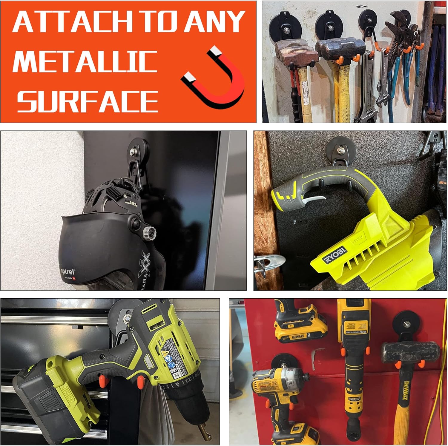 - [Multiuse Neodyium Magnet Hook]: strong storage hook can easily support the weight and can hang most items. Applicable to scenes such as kitchens, warehouses, offices, etc. Can storage various tools, such as hoses, rake, broom, mop and other garden tools