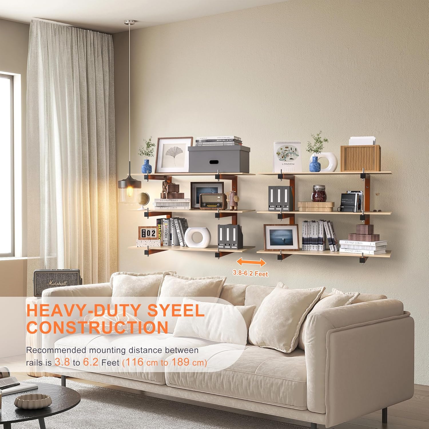 - 1320 LBS WEIGHT CAPACITY : Wall-mounted wooden storage rack adopts a more supportive triangular one-piece design. each shelf can hold up to 220 lbs, the 2-pack wood rack organizer can hold up to 660 lbs, and the 4-pack wood storage system can hold up to 1320 lbs, so you can store all your heavy and bulky items, these metal organizer units are roomy enough for your everyday needs.