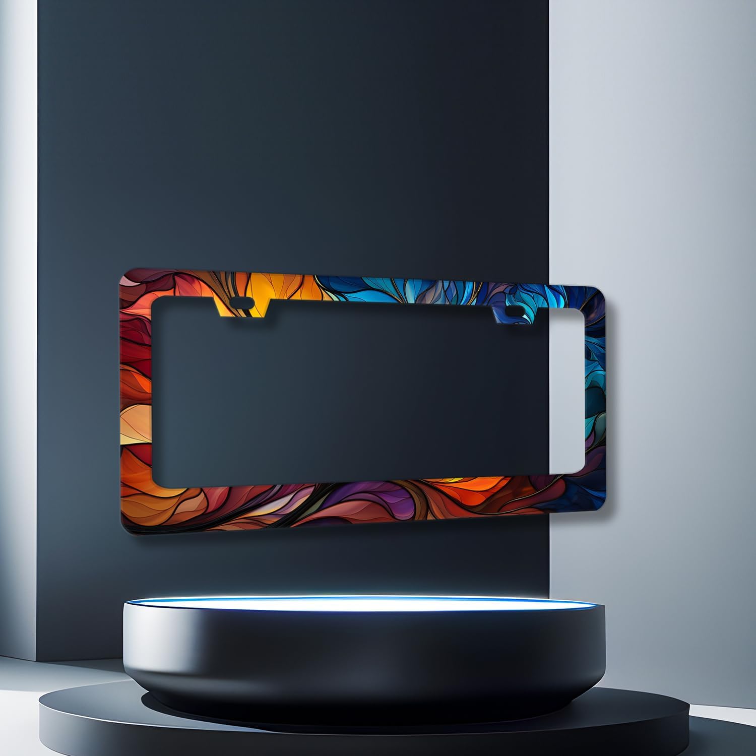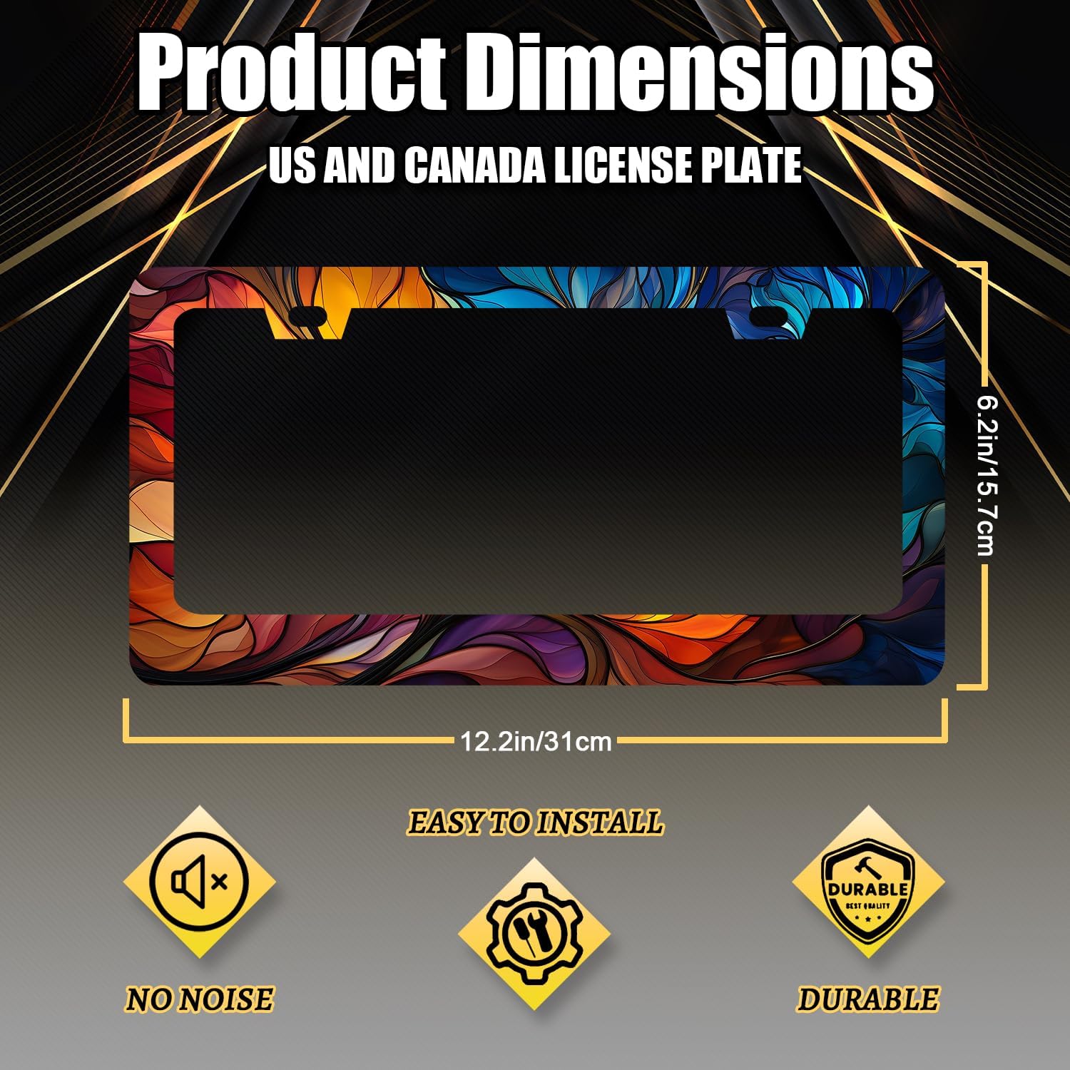 Abstract Leaf License Plate Frame Beautiful Leaves Floral License Plate Holder Stainless Steel Colorful Car Accessory Funny License Plate Decoration Size 12.2" x 6.2" with Screws