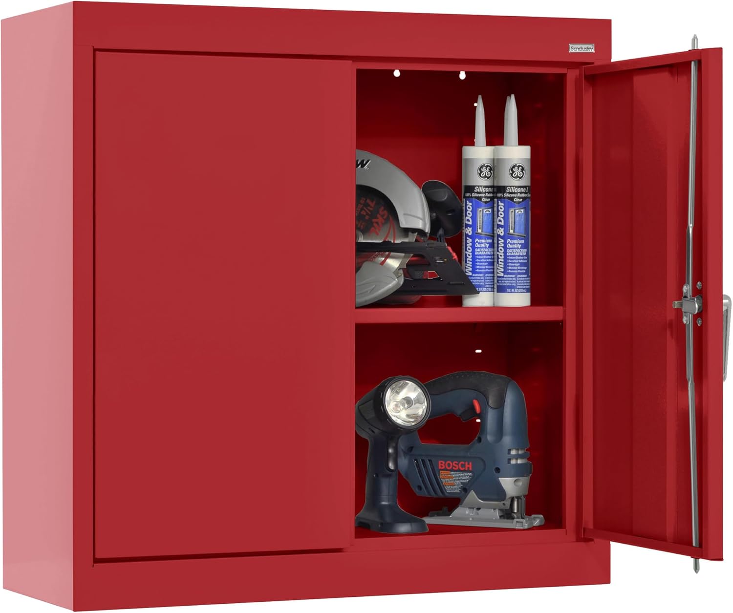 Sandusky Lee WA11301226-01 Wall-Mount Metal Storage Cabinet with Adjustable Shelf, Locking Handle, 200lb Capacity, 12" Depth x 30" Width x 26" Height, Red