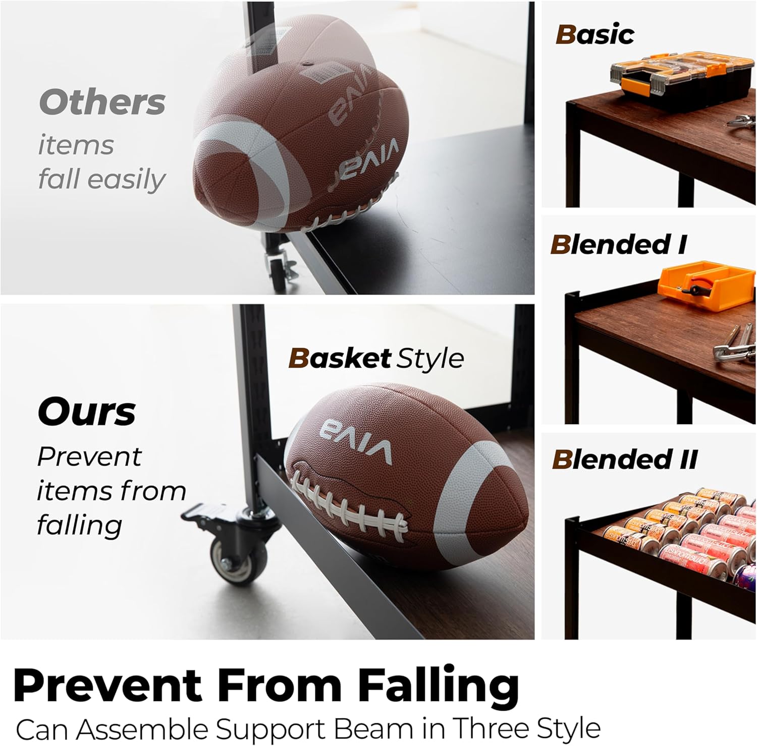 HOMEDANT House 5-Tier Metal Rolling Cart Shelf Rack Casters Heavy Duty Laminated Wheel Shelving Unit Adjustable Utility Storage Shelves Organizer Shelf Kitchen Garage 36.2" W x 16.5" D x 69.5" H 1Pack