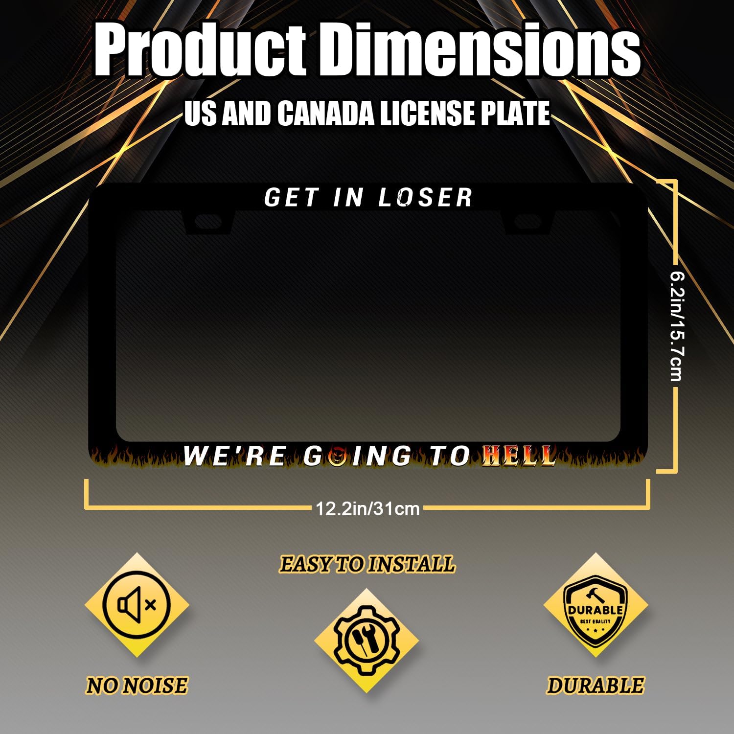 Get in Loser We're Going to Hell License Plate Frame Jesus License Plate Frames for Personalized Car Decorative Stainless Steel Funny License Plate Holder Christian Auto Part 12.2" x 6.2"