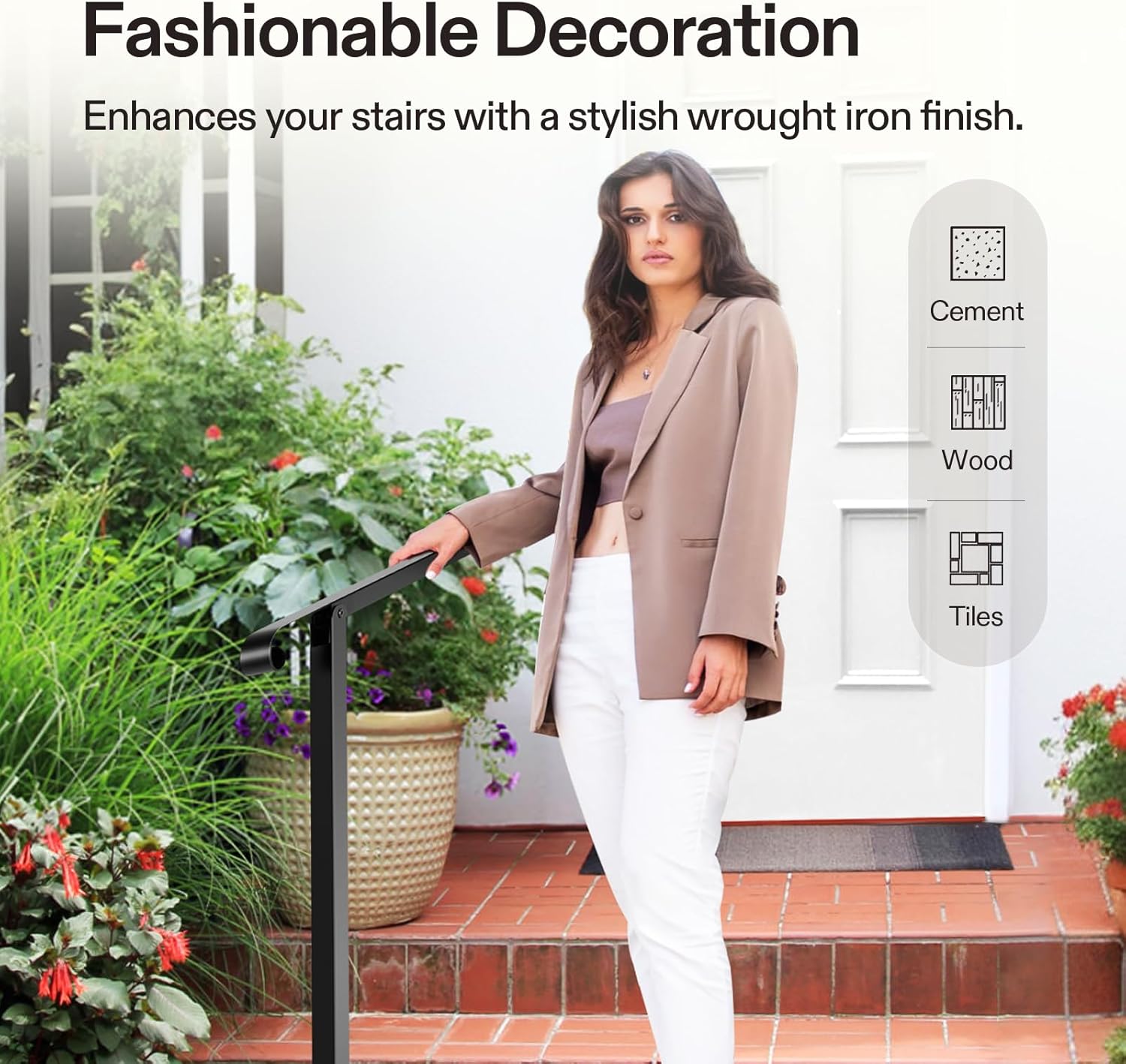 - Sturdy & Durable: Made of premium iron for stability and durability, this handrail can withstand harsh weather conditions, including rain and snow; Thick black powder coating reduces chance of peeling off, rust, scratches, and discoloration, making the railing easy to maintain and clean