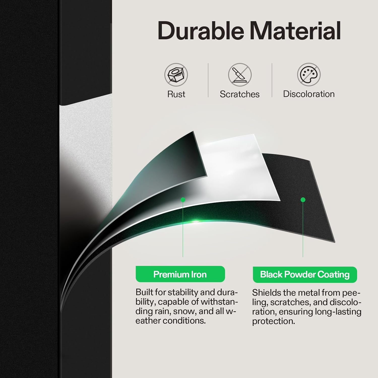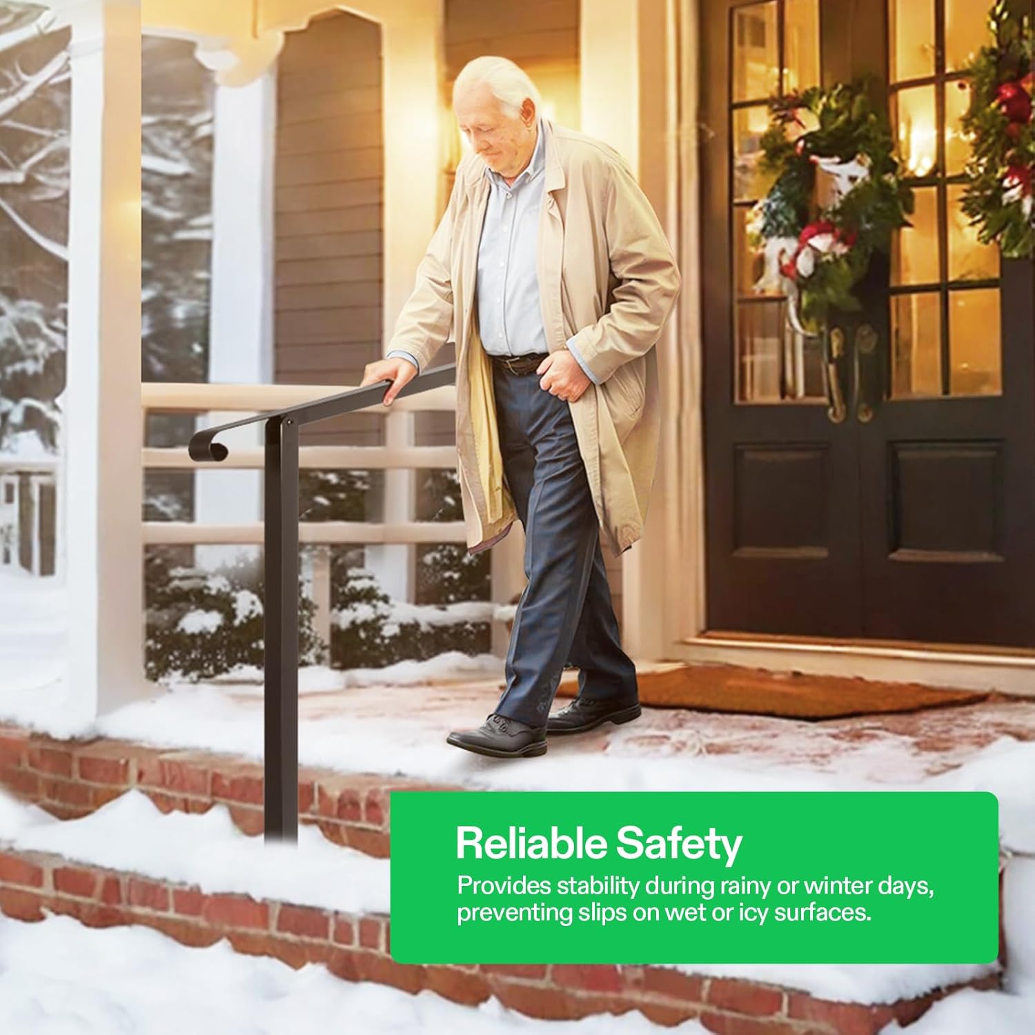 - Sturdy & Durable: Made of premium iron for stability and durability, this handrail can withstand harsh weather conditions, including rain and snow; Thick black powder coating reduces chance of peeling off, rust, scratches, and discoloration, making the railing easy to maintain and clean