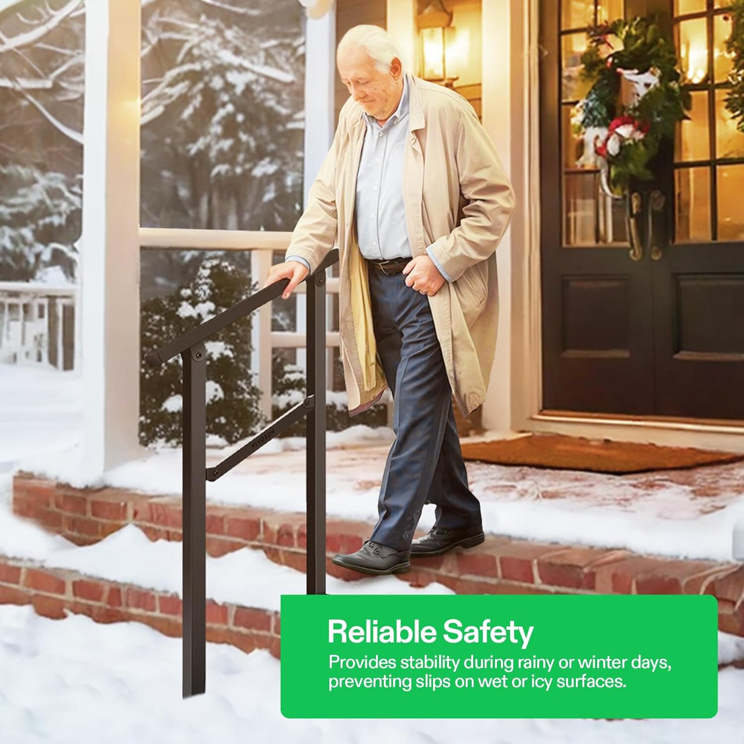 - Sturdy & Durable: Made of premium iron for stability and durability, this handrail can withstand harsh weather conditions, including rain and snow; Thick black powder coating reduces chance of peeling off, rust, scratches, and discoloration, making the railing easy to maintain and clean