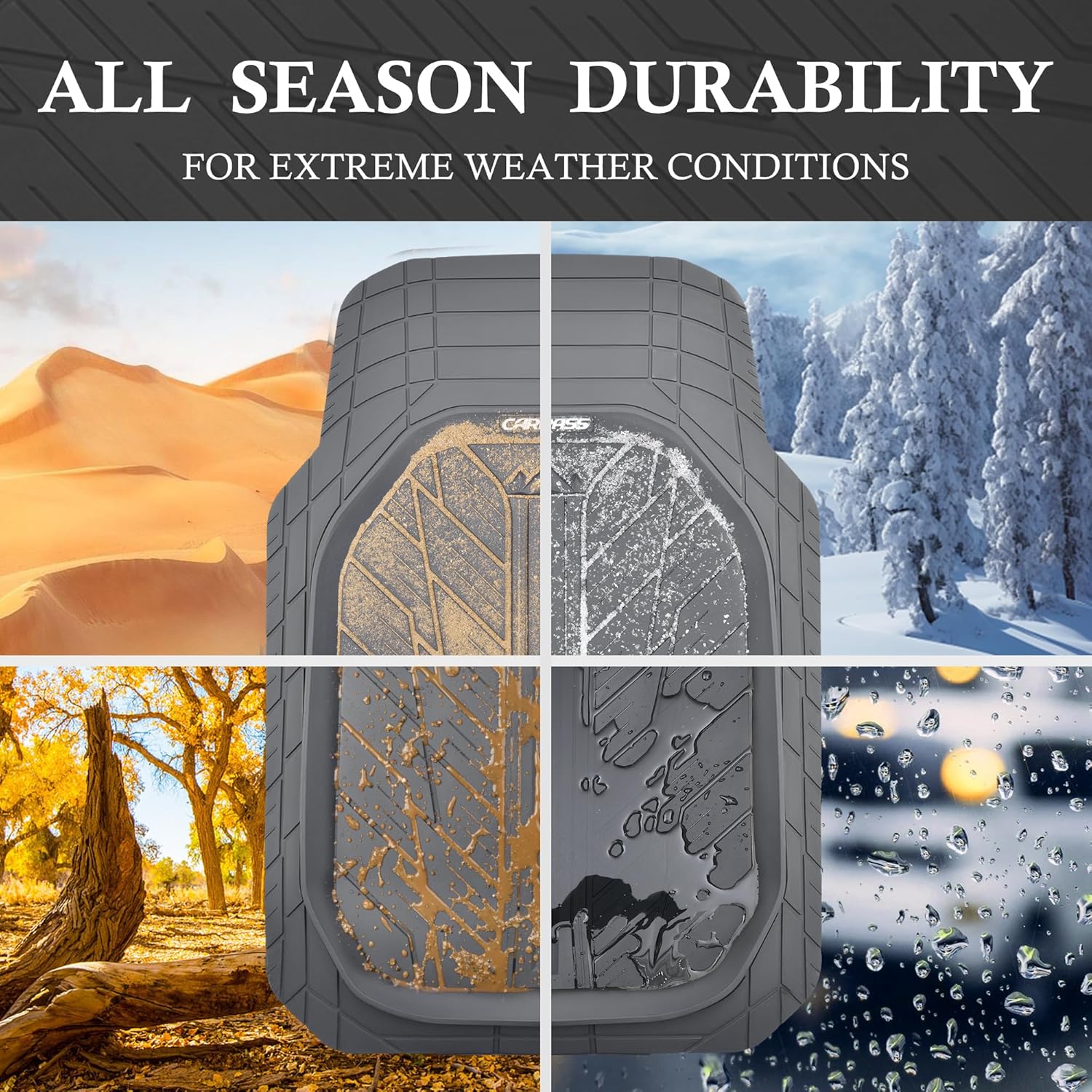 CAR PASS DeepDish Floor Mats for Cars Full Set,Heavy Duty Rubber Car Mats 3-Piece,Universal Waterproof Trim-to Fit Automotive Floor Mats for Truck Van SUV, Durable All-Weather Car Mats(Pure Gray)