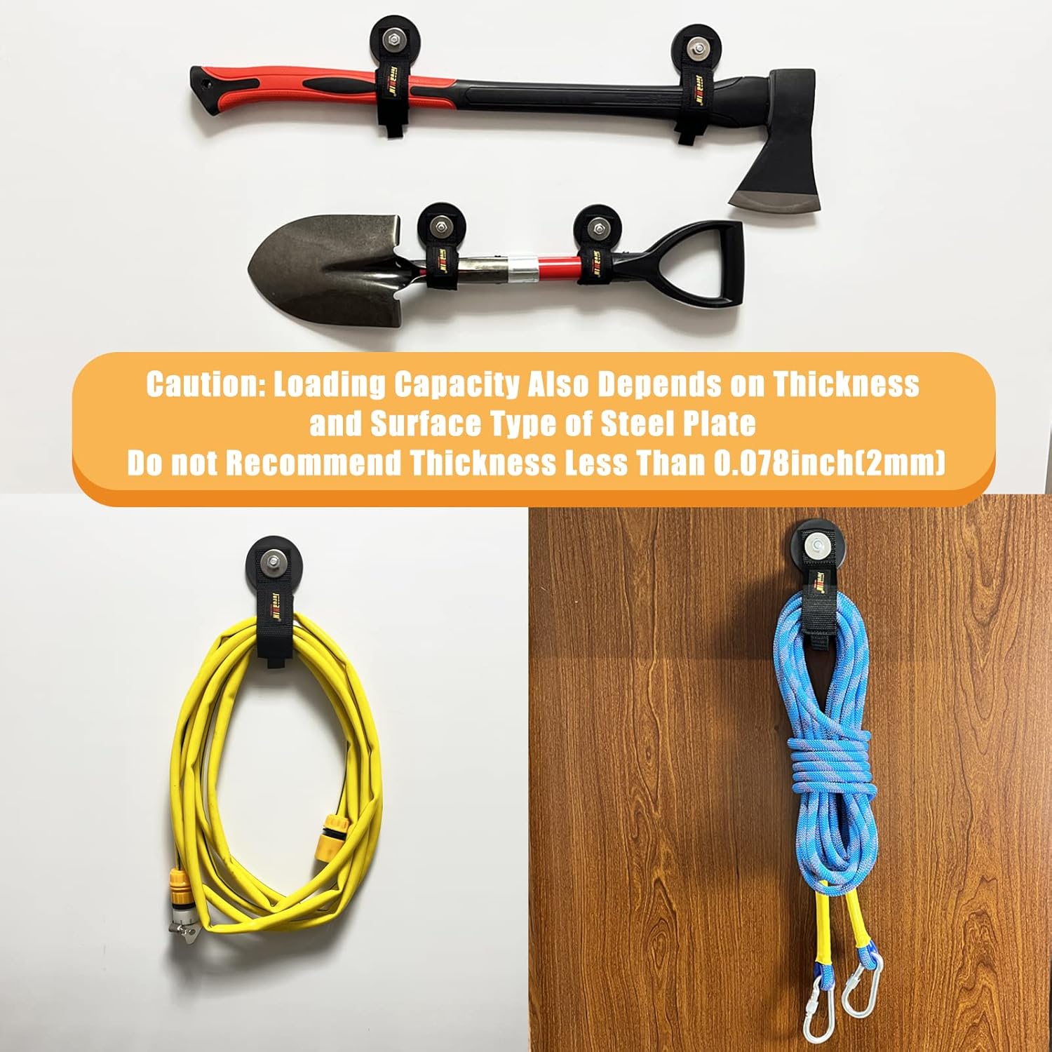 - Innovation Design: This heavy duty garage magnet hook consist of strong rubber coated magnet and heavy duty storage strap. No need drill, just put it on steel plane. Easy to install and take down