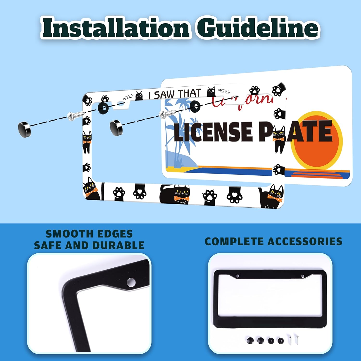 - STAINLESS STEEL LICENSE PLATE: The material is strong and not easy to bend, and can be used for a long time.The multi-layer protective design treatment improves your experience of using the license plate frame.