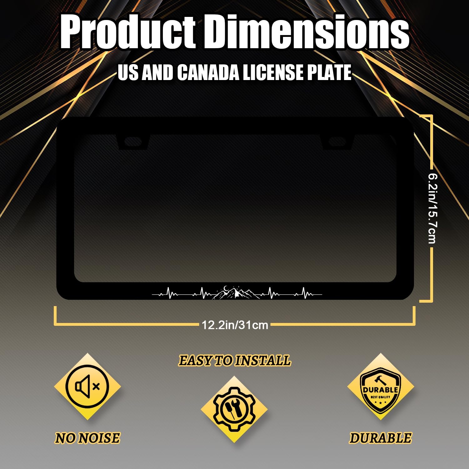 Mountain License Plate Frame Mountains Heartbeat License Plate Holder Colorful License Plate for Car Decoration Stainless Steel Car Accessory with Screws for Men Women 12.3" x 6.3"