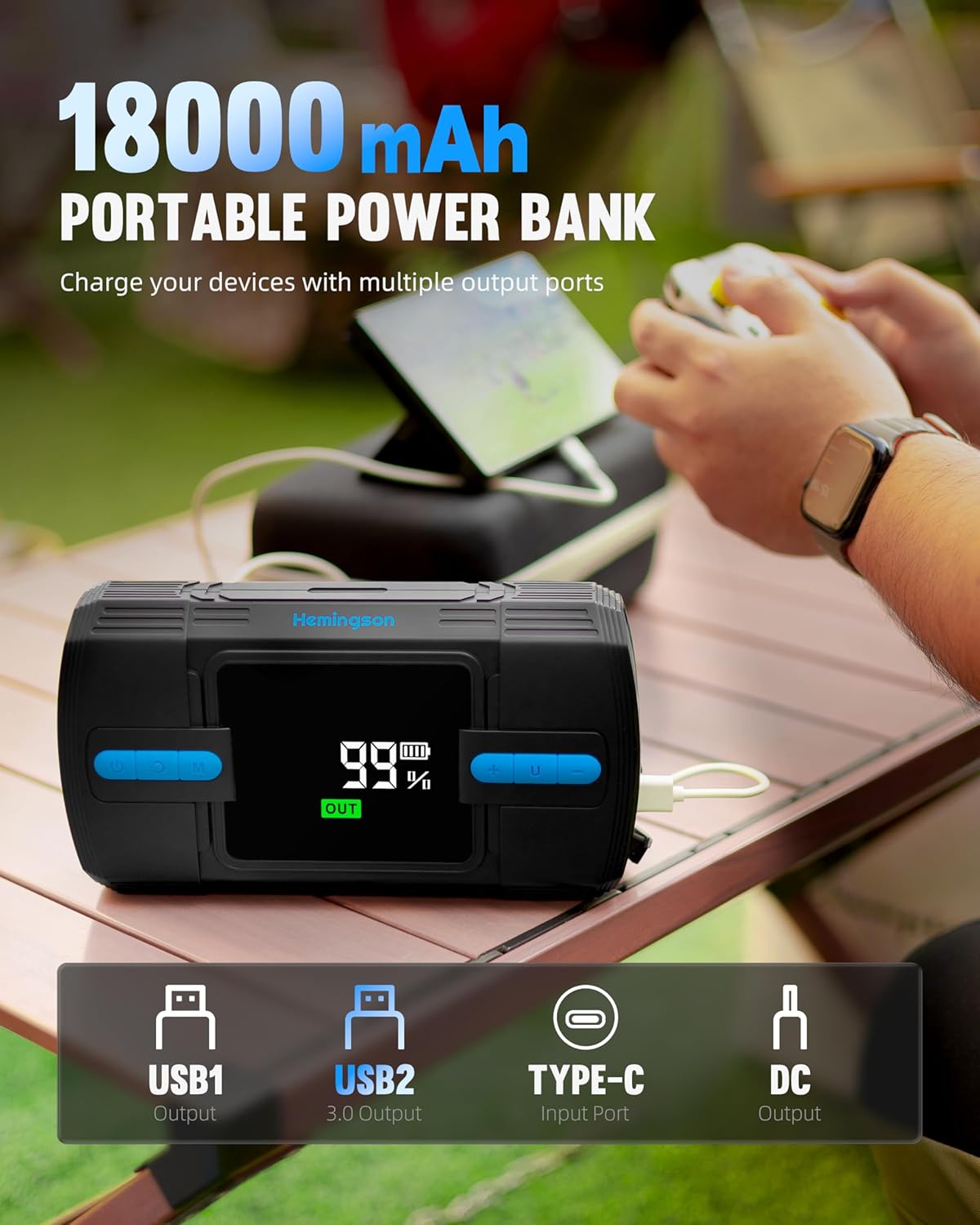 - Multi-Purpose and Portable-Say goodbye to the old bulky jump start battery pack! HVJ02 is more lightweight and portable and integrates 6 practical functions to meet all your needs, including car emergency start, air compressor, 400-lumen lighting, SOS warning, dual USB ports for charging mobile devices, and 12V~16.8V 10A DC outport