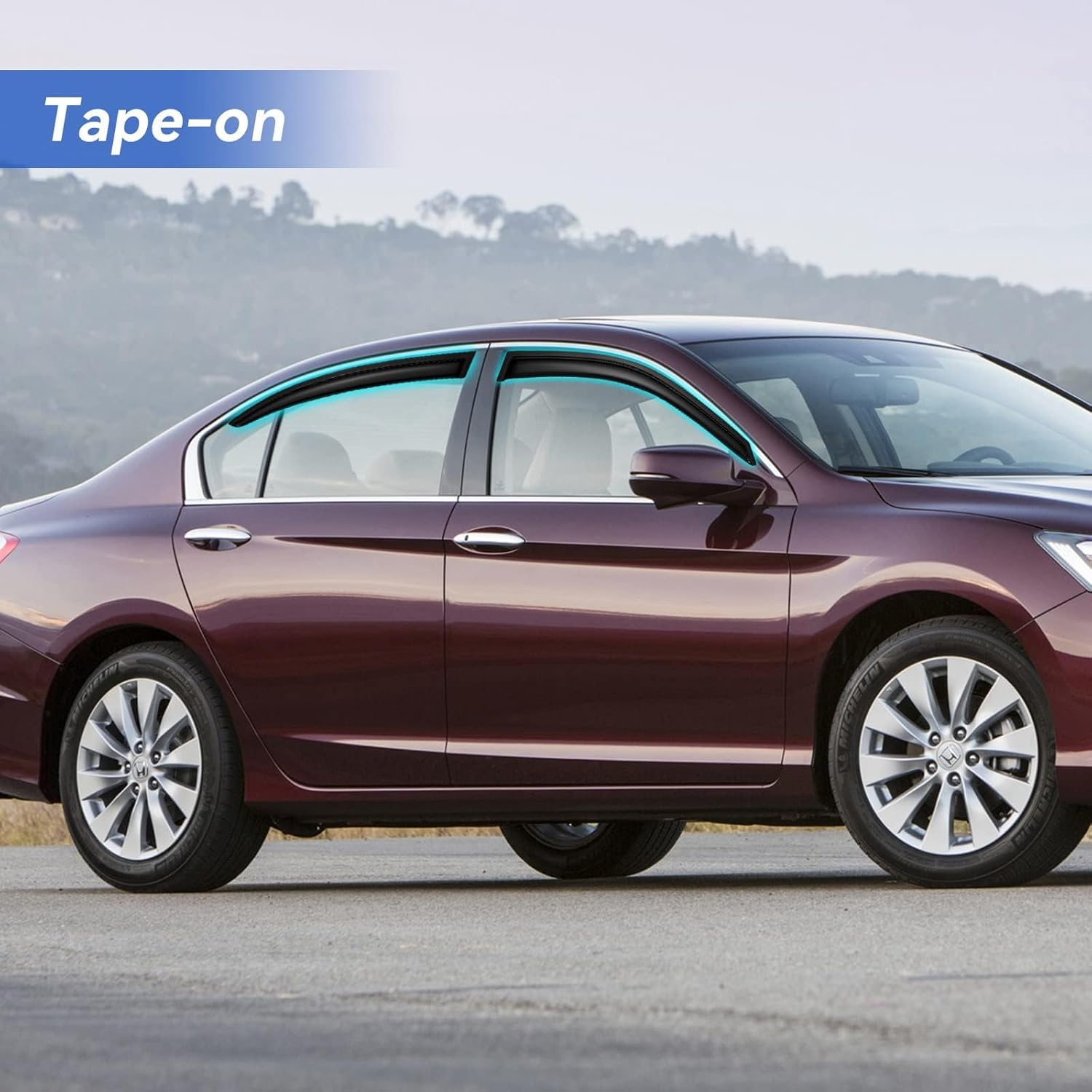 - ăPerfect FităYQAUTEC Window Visors Rain Guards Shield for 2008 2009 2010 2011 2012 2013 2014 2015 2016 2017 Honda Accord Sedan, Side Window Vent Wind Deflectors Visors Shades for 08 09 10 11 12 13 14 15 16 17 4PCS Honda Accord Tape-On.