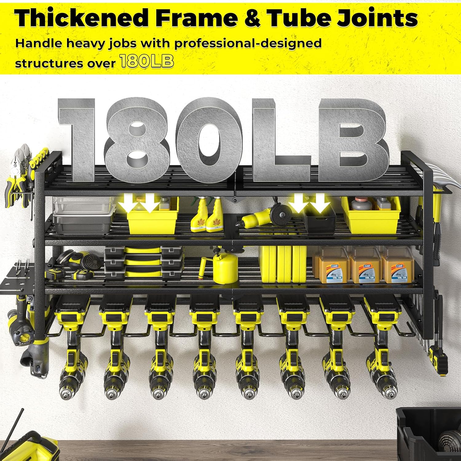 KAFAHOM Power Tool Organizer-8 Drill Holder Wall Mount,Tool Organizer and Storage rack for Garage Organization, Heavy Duty Metal Tool Shelf with Air tool/Screwdriver/Hammer/Plier Holder