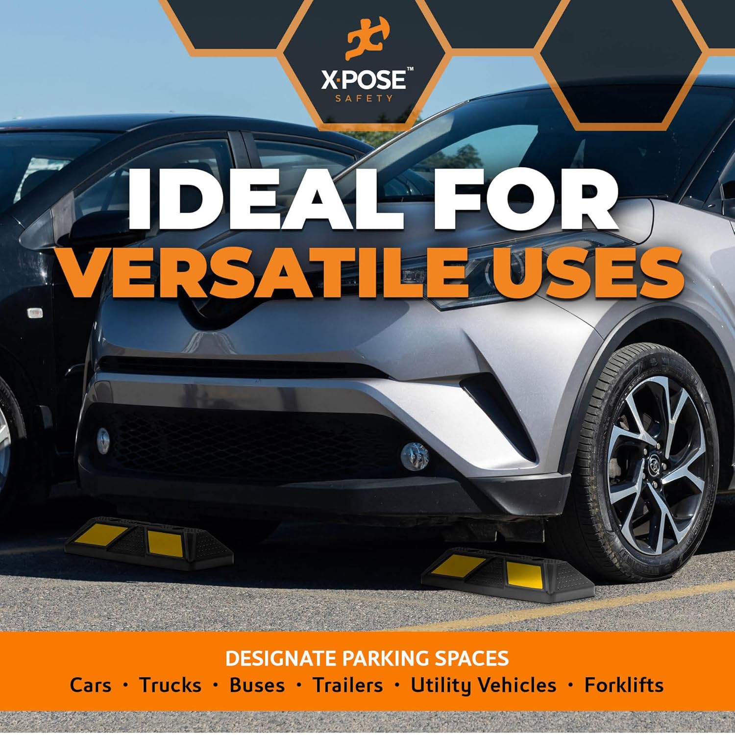 - STOP ON A DIME -- These reflective parking curbs are tire stops that halt vehicles in their tracks, letting drivers know they're in the correct spot every time they pull in, without risking hitting anything in front of or behind them. A helpful parking target for new or timid drivers.