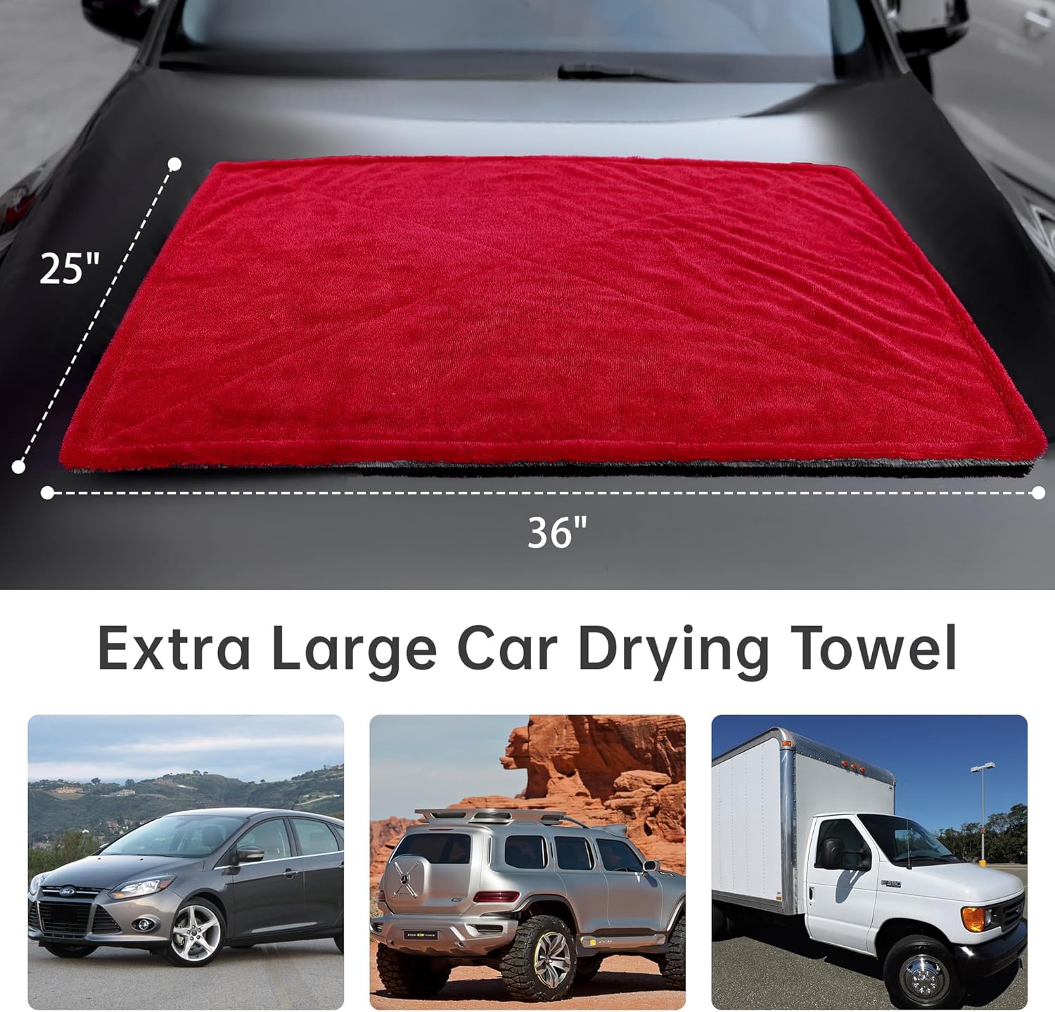 - EXTRA LARGE SIZE - This car drying towel measures 25" x 36". Dry your entire car or truck easily and quickly with this super soft twisted loop microfibre drying towel, so your car will always be spotless