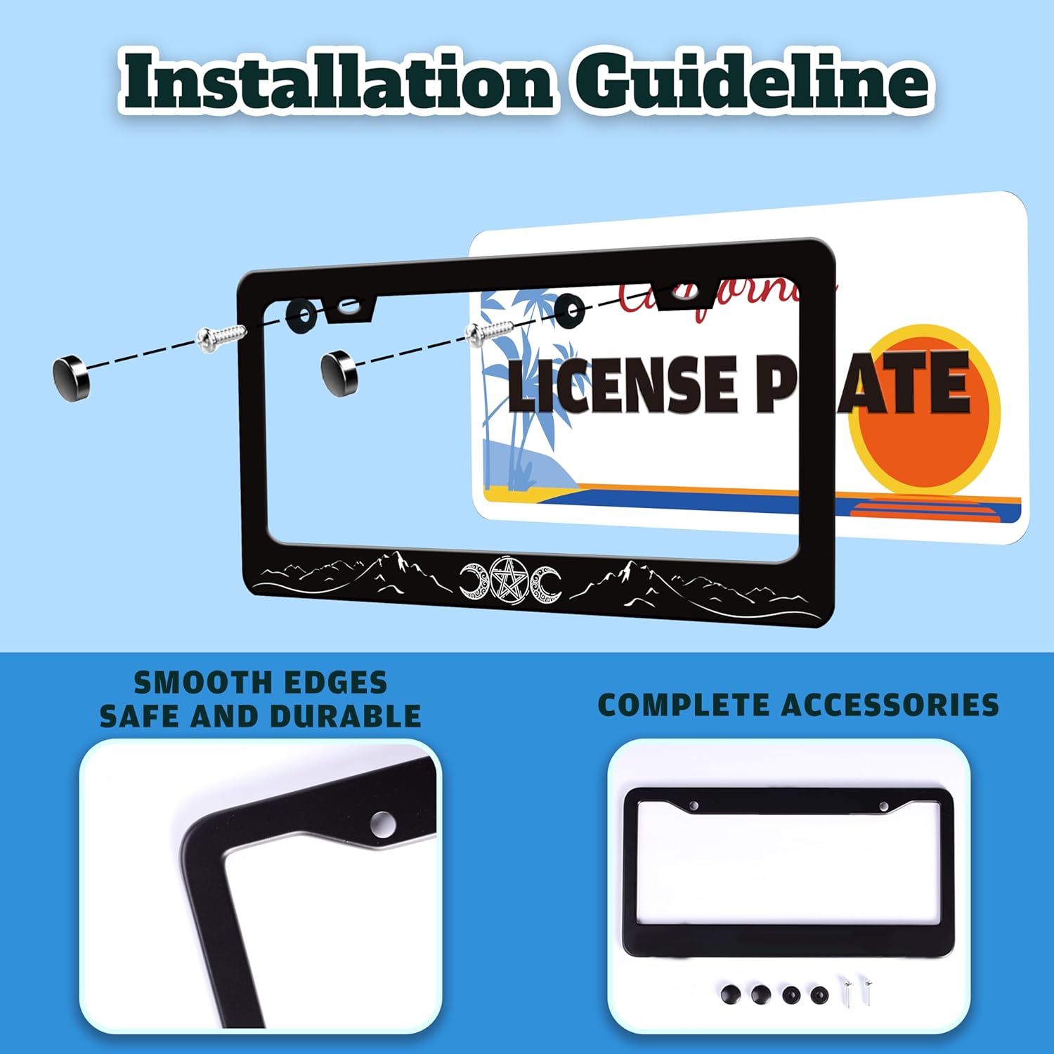 - STAINLESS STEEL LICENSE PLATE: The material is strong and not easy to bend, and can be used for a long time.The multi-layer protective design treatment improves your experience of using the license plate frame.