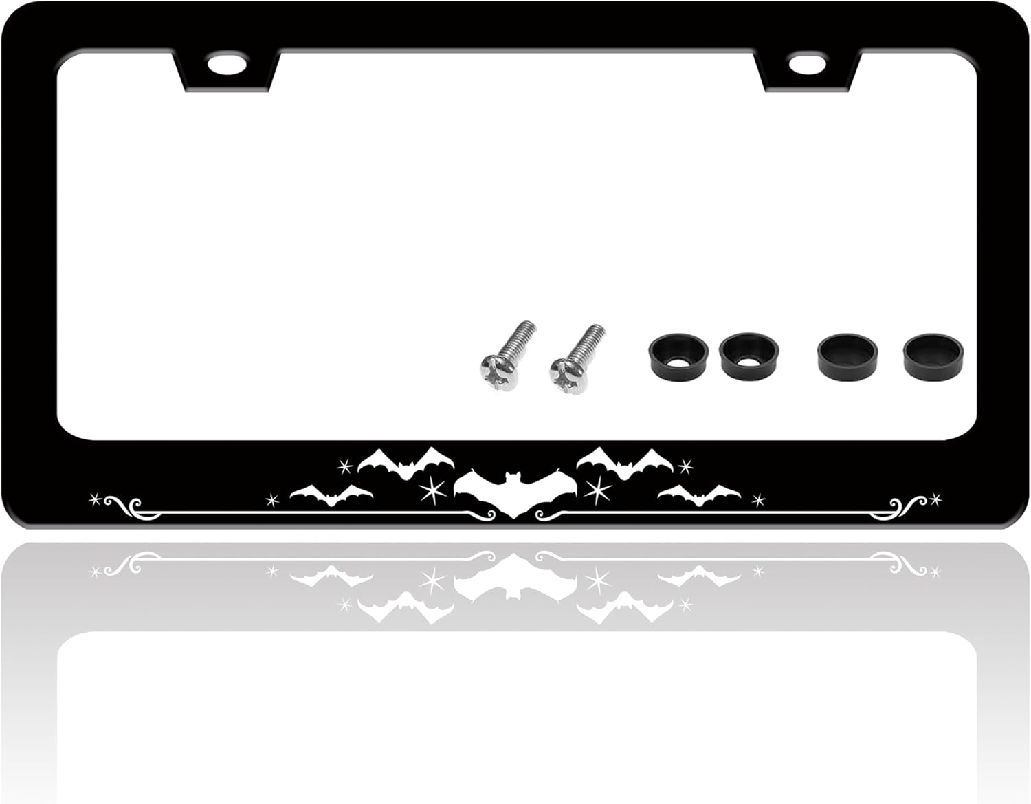 Bat License Plate Frame Funny Gothic Style License Plate Holder Animal for Front or Rear Car Tags Reusable Durable Stainless Steel Car Decoration with Screws 6.3 X 12.2 Inch for Men Women