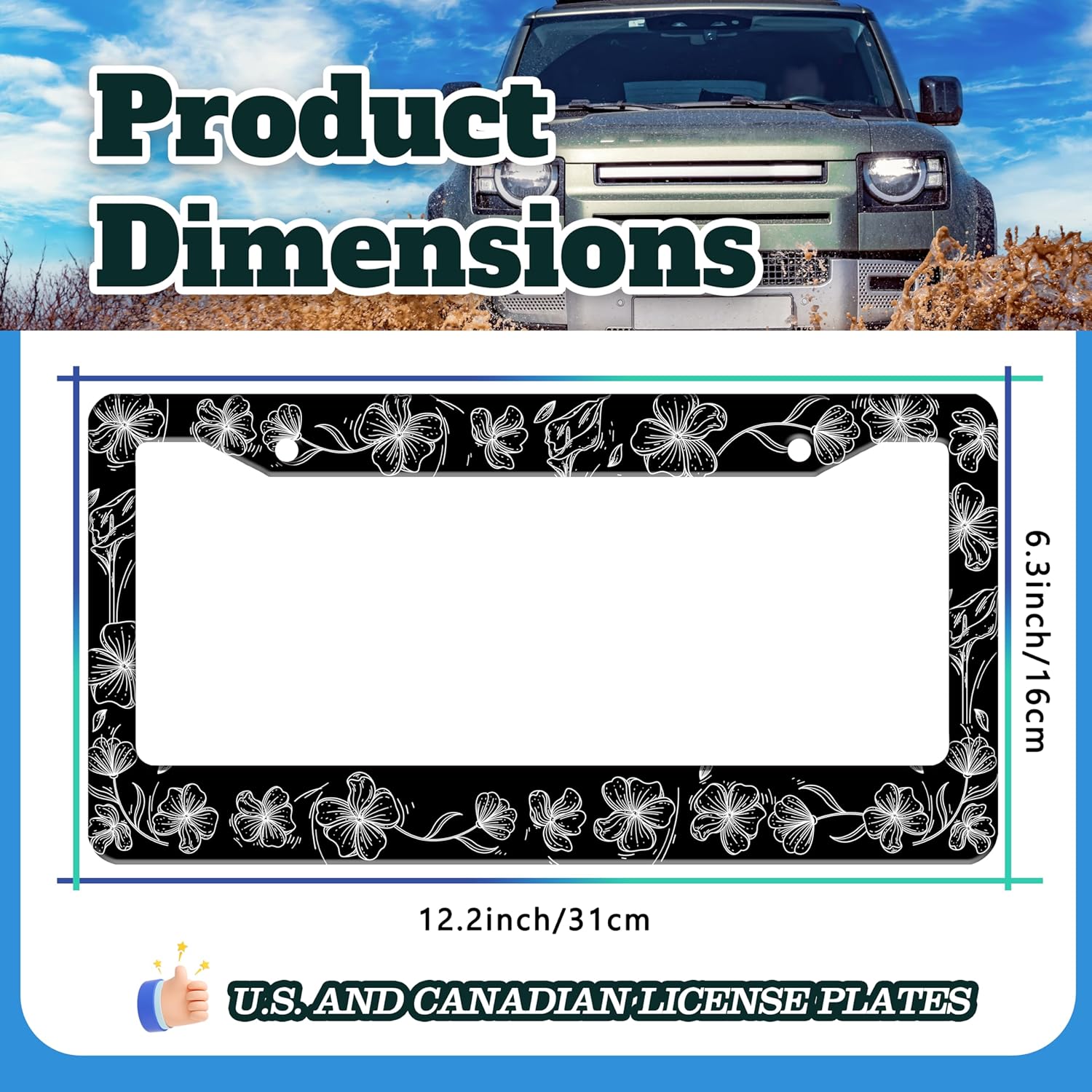 Black and White Line Drawing Flowers License Plate Frame Beautiful Floar License Plate Holder for Front or Rear Car Tags Reusable Stainless Steel Funny Car Decoration with Screws 6.3 X 12.2 in