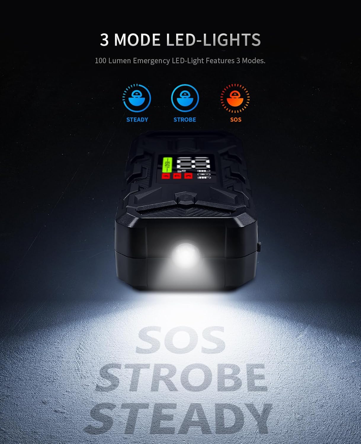 - Extended Safety Protection: User-friendly designed car jumper has built-in safety system offering the easiest and simplest experience for all users without worrying about safety issues. Advanced safety protocol features 10 different protections including spark-proof, reverse polarity and reverse charge protection.
