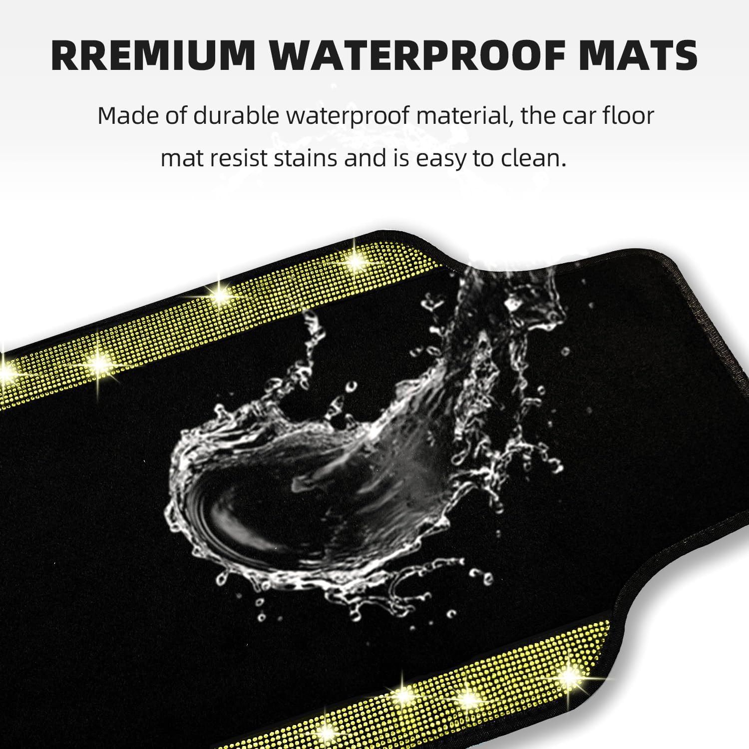 NBTEPEM Bling Car Floor Mats Full Set, Universal Fit Most Cars,SUV, Trucks, 4 pcs Sparkle Glitter Diamond Carpet for Women Girls with Anti-Slip Pad (Yellow Diamond)