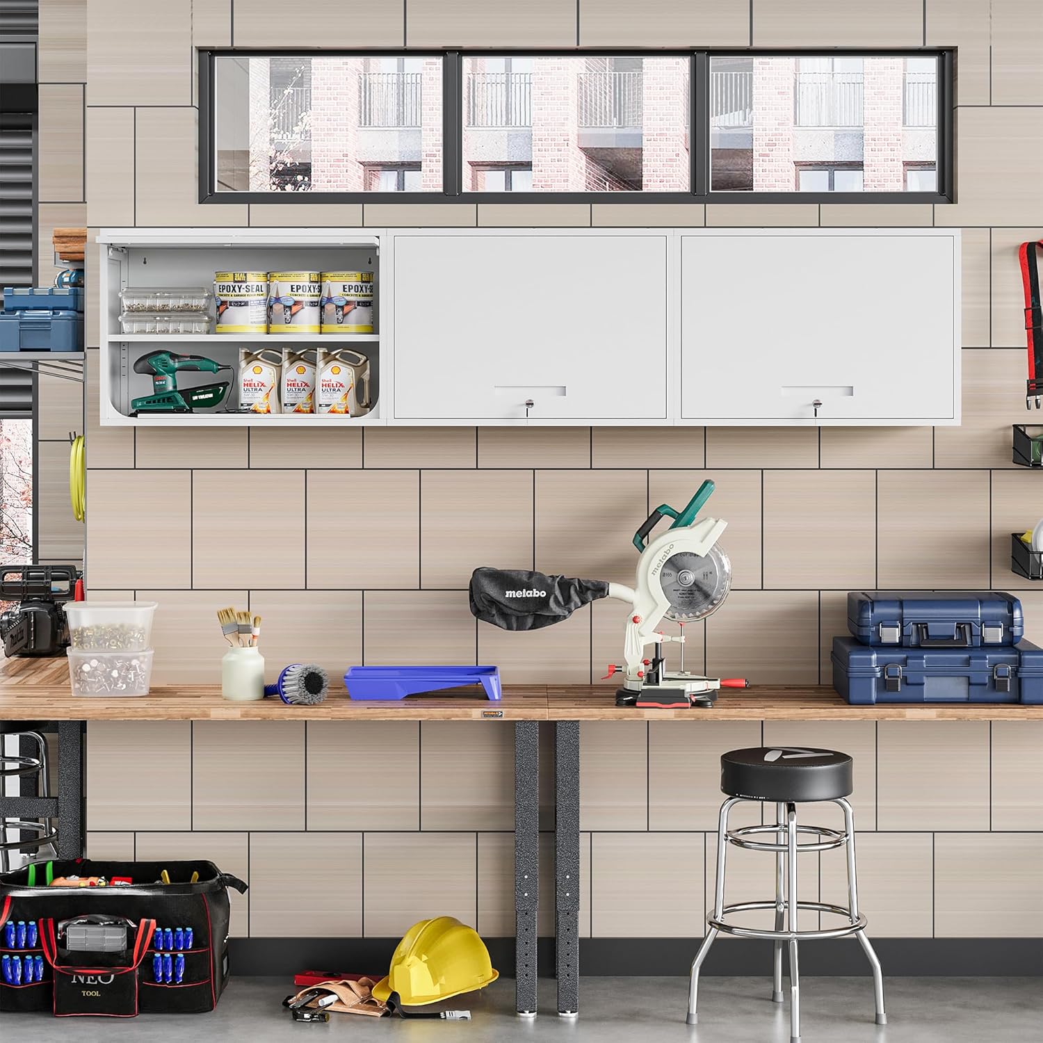 Metal Wall Cabinet with Locking Door and Shelf, Hanging Garage Cabinets with Up-Flip Doors for Garage, Warehouse, Home, Office, Assembly Required (White, One Cabinet)