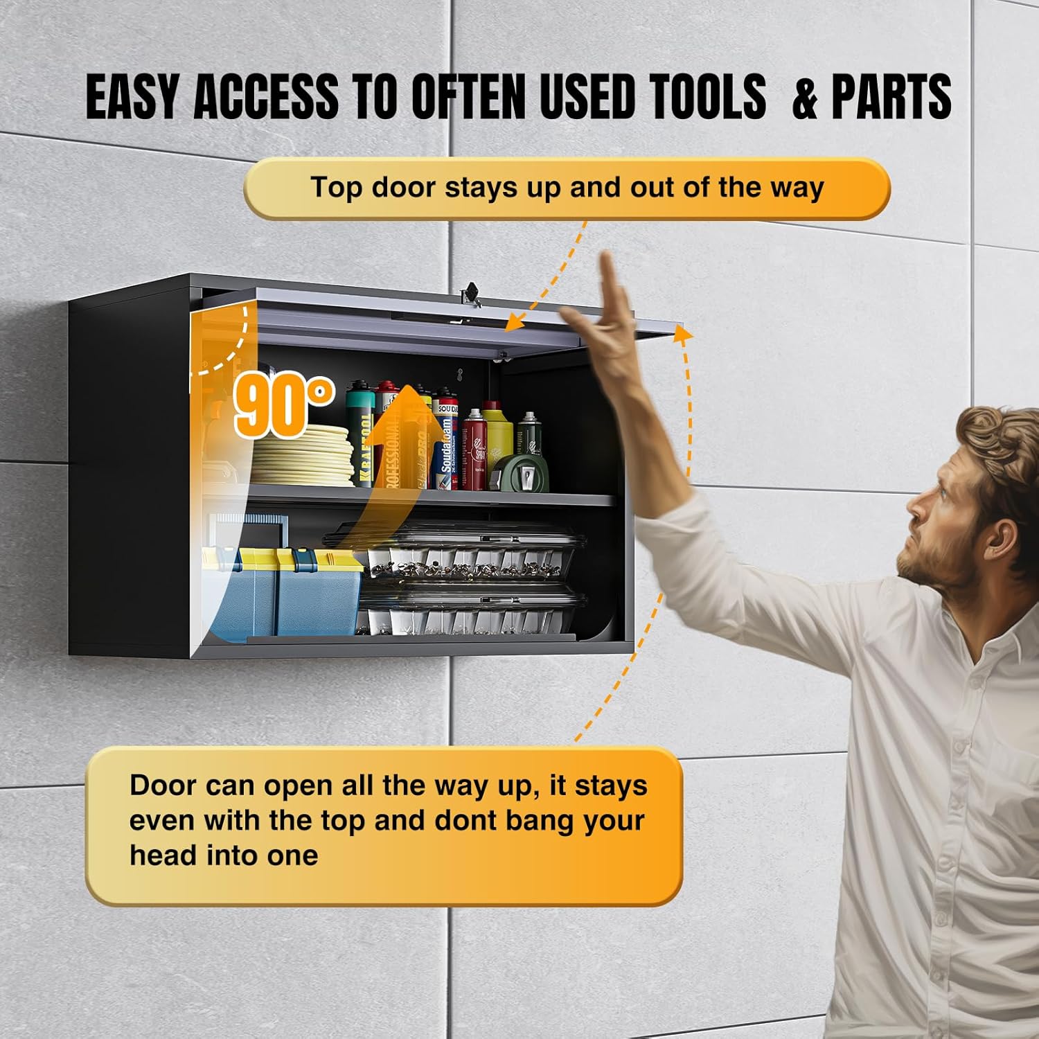 Metal Wall Cabinet for Garage Floating Garage Storage Wall Mount Shop Cabinet Upper Storage Trailer Gearbox Tool Small Wall Steel Adjustable Shelf Assembly Required