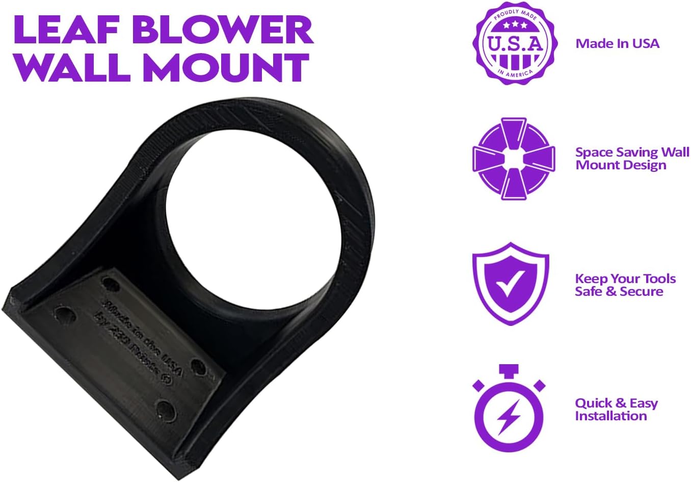 - DURABLE DESIGN β Made in the USA from high-quality plastic, this sleek blower rack and wall mount resists cracking and deforming, providing a secure and stable solution for your heavy leaf blower