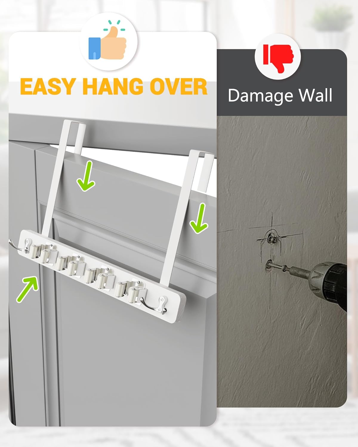 - Wide Range of Uses, Ideal Gift: Step away from traditional broom holder door mount. Simply place door broom holder organizer over the door. Our over the door broom and mop holder maximizes space without compromising style, effortlessly organizing brooms, mops, towels, and brushes in the laundry room, garage, bathroom or kitchen. With its aesthetic appeal and practicality, it's a thoughtful gift for occasions like Father's Day, Mother's Day, or for husband, wife and grandparents.