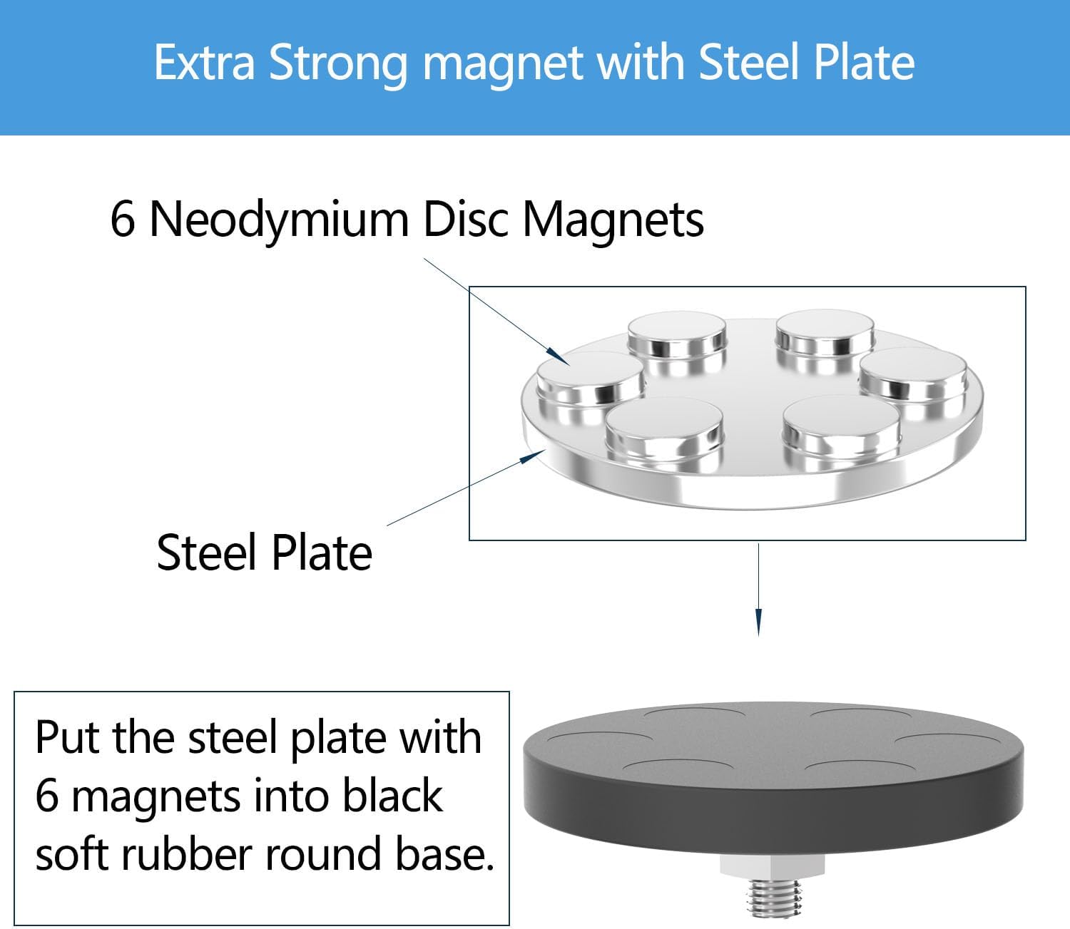 - 🧲[Powerful Magnetic Holders]: Each 2.60-inch magnet base comes with 6 super-strong N52 rare earth magnets. In our tests on 1.18-inch steel plates, they pulled vertically with a force of 80lbs and horizontally with a force of 16lbs.