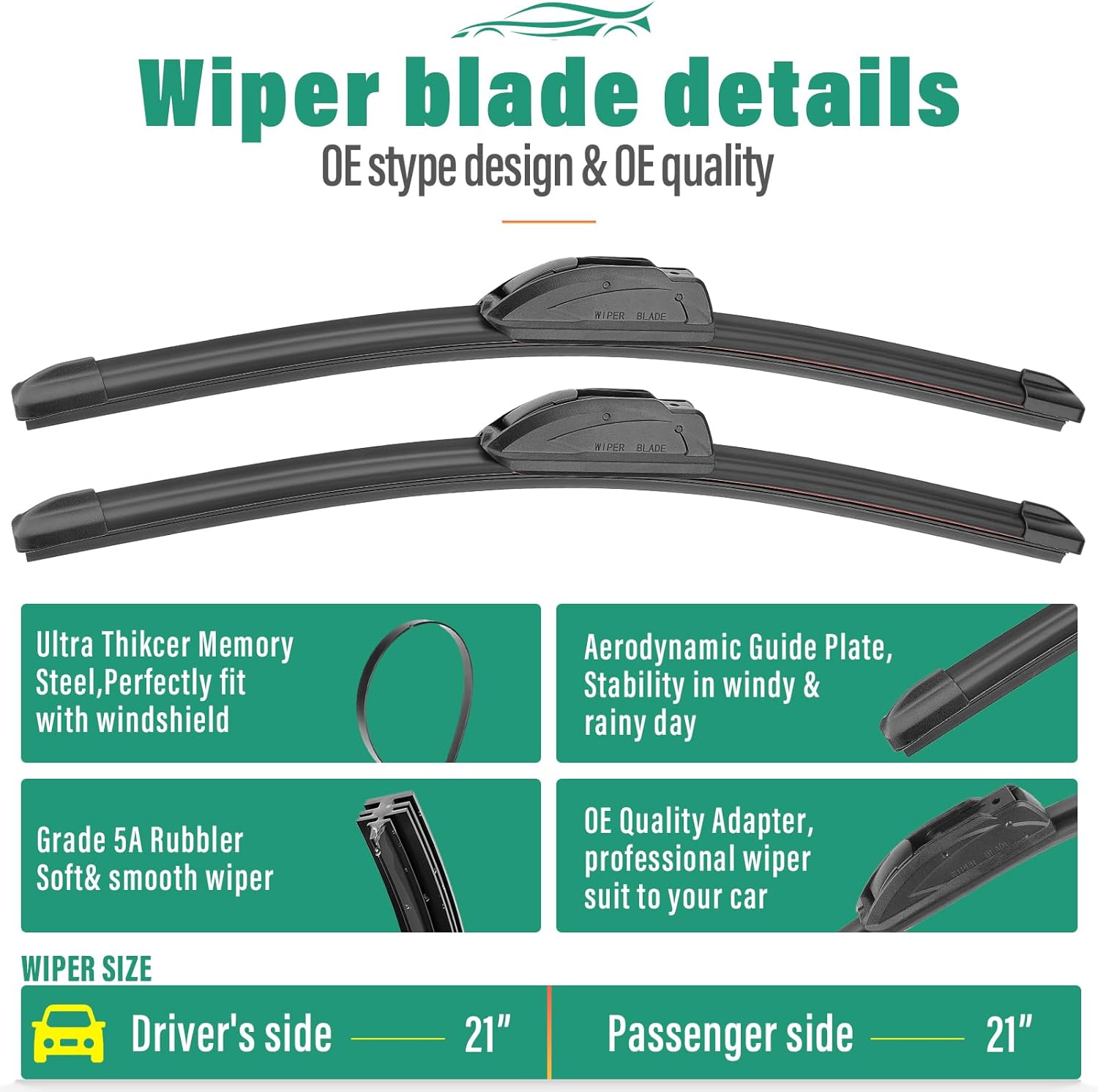 21" 21" 10" Windshield Wiper Blades Replacement for Jeep Patriot 2007-2017 Premium All Weather Front Rear Wipers Set - OEM Quality (Pack of 3)