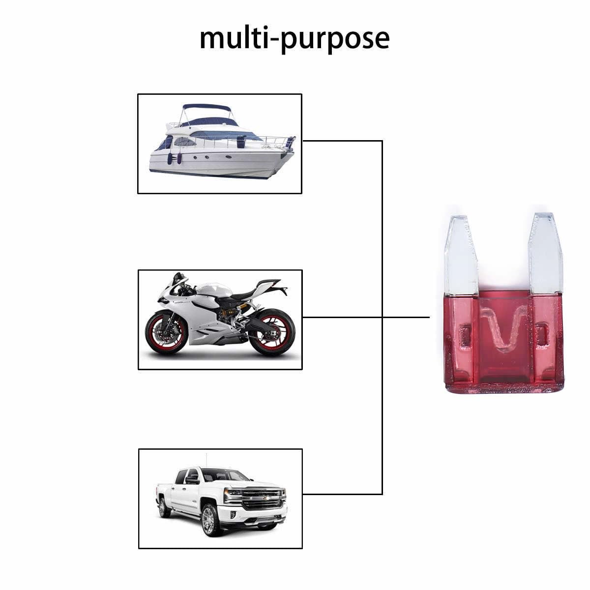 • WIDELY USE - These assorted fuses are specifically designed for Cars, Trucks, SUVs, ATVs, UTVs, Camper RV, Motorcycles, Fleet, Golf Car, Boat, snowmobiles, and most general DC applications etc., covering such components as radio, light, turn signals, etc.