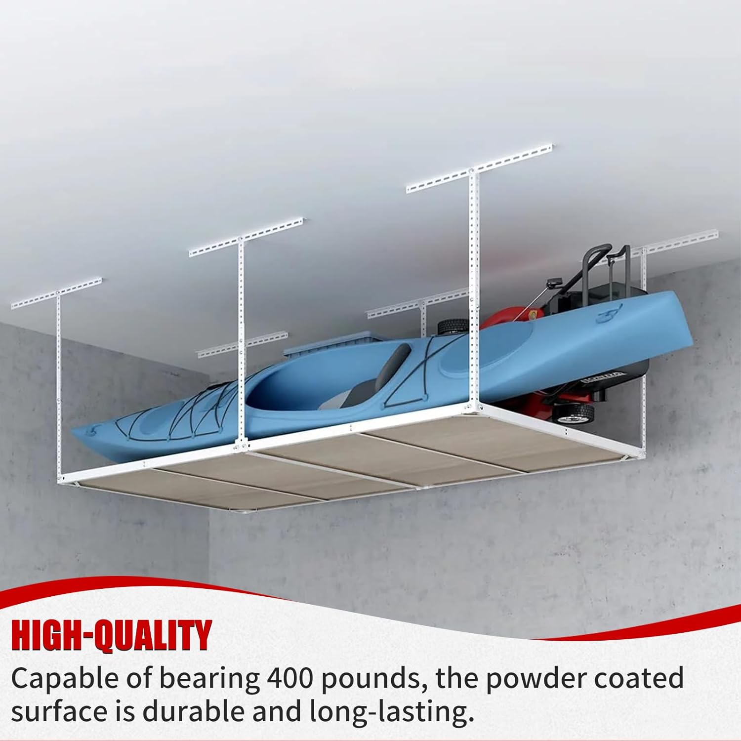 Heavy Duty Overhead Garage Storage Rack, Adjustable Organization System, Metal Garage Ceiling Storage Racks, White