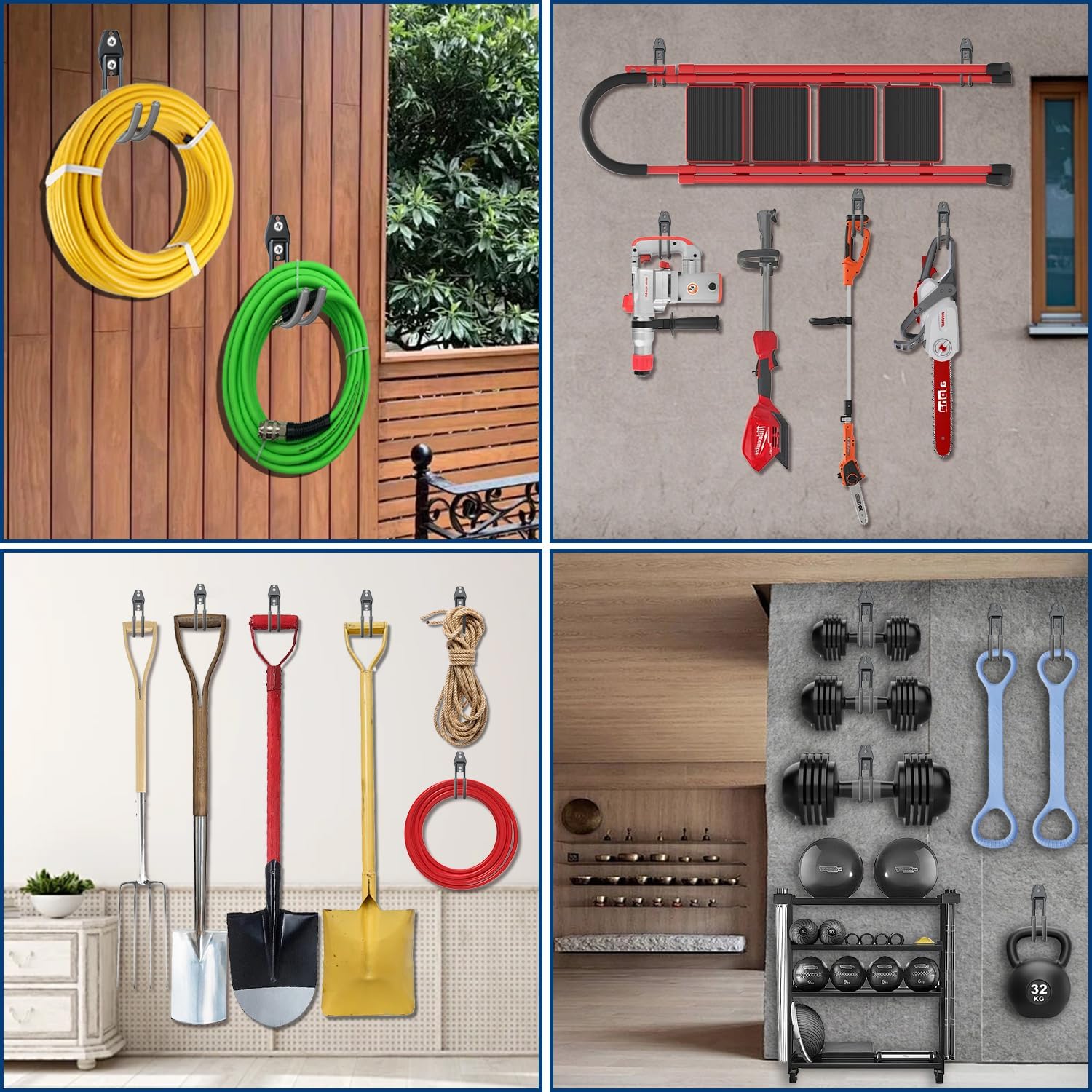 - Anti-Slip PVC Coating: Our garden hose hook features a non-slip PVC coating and is dip-plasticized for enhanced durability, offering superior longevity compared to the typical spray-plasticized hooks available on the market. The hose mount is designed with a sheath at the end of the double hooks, making it easy to grasp items and hold them securely in place for years, and protect the goods surface from being scratched